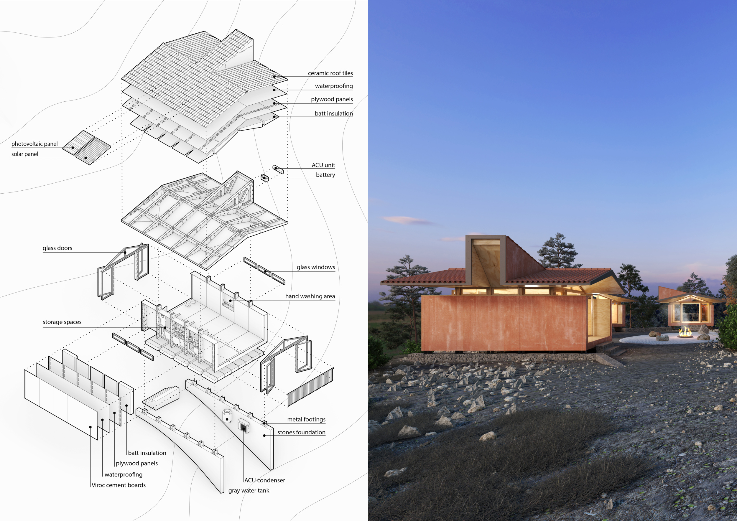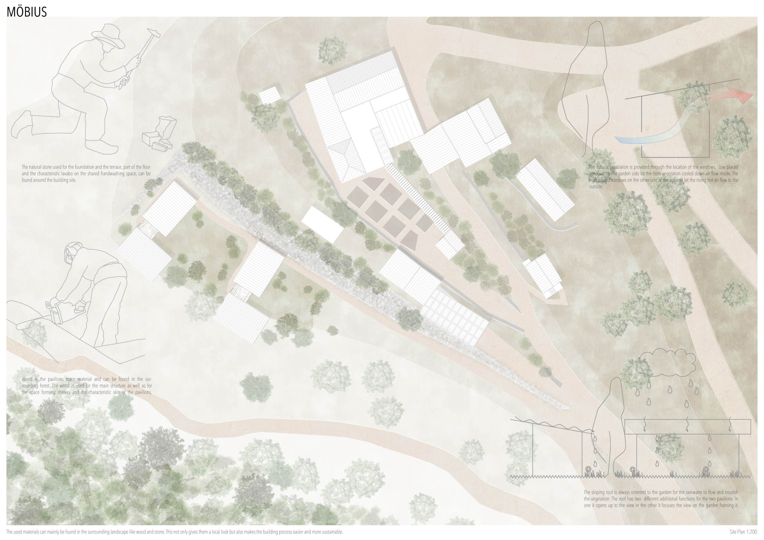 The competition received hundreds of excellent submissions from around the world, with proposals offering ideas ranging from 3D-printed pods to site-extracted stone and rammed earth structures. The winning entries displayed below were selected by the jury for their outstanding material and experiential qualities, for their ability to be implemented for construction, as well as for the quality of their advanced drawing and means of presentation.