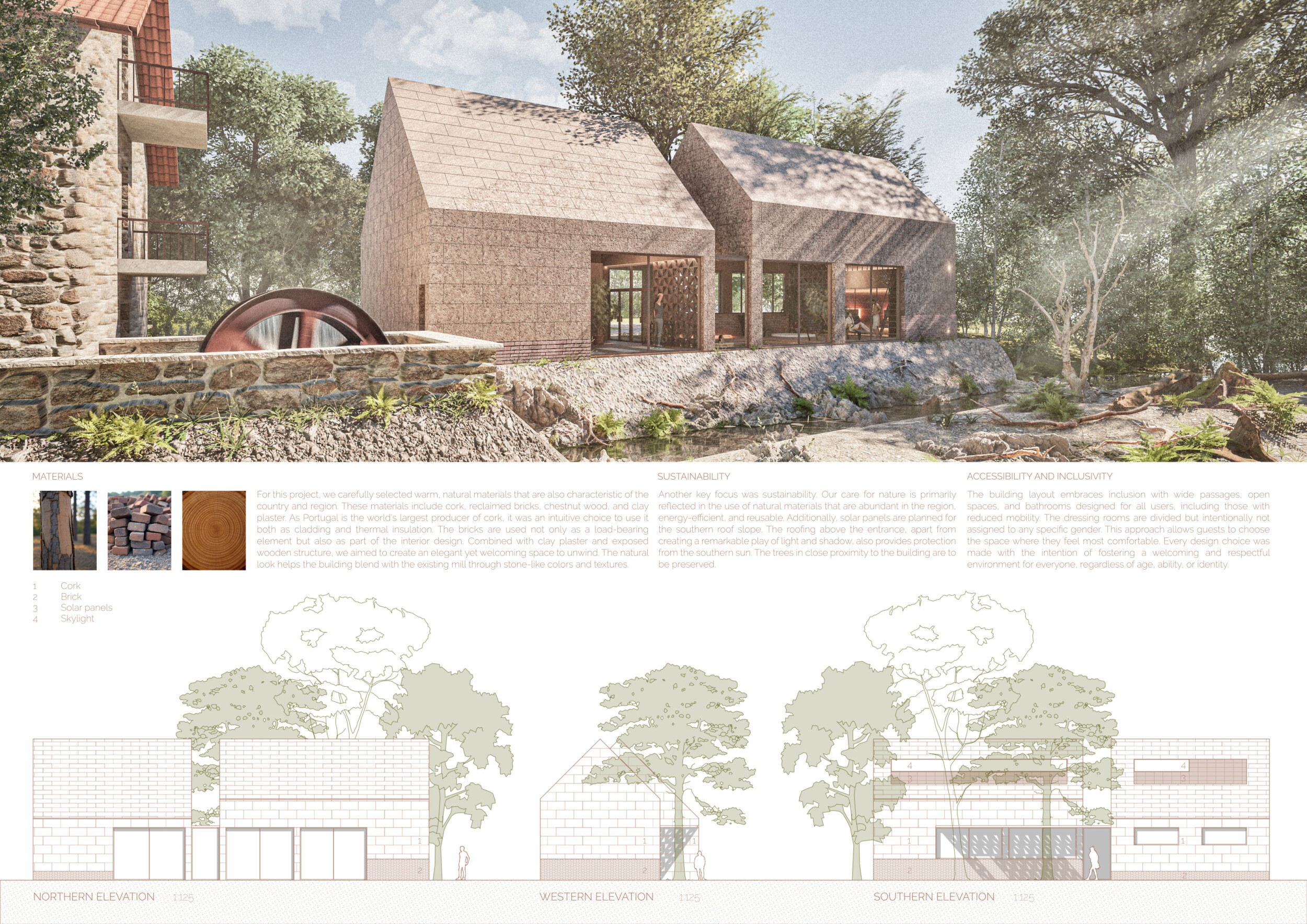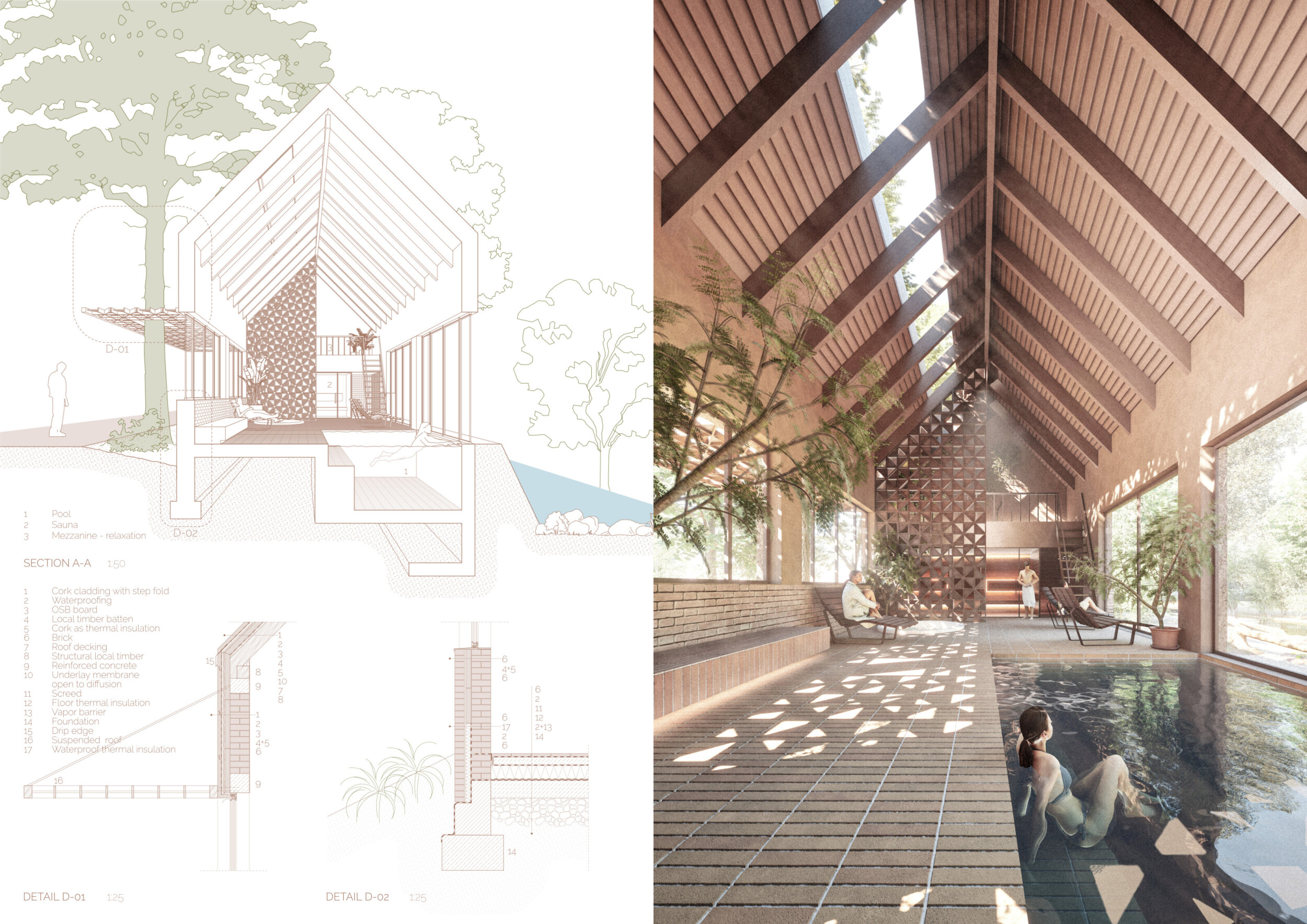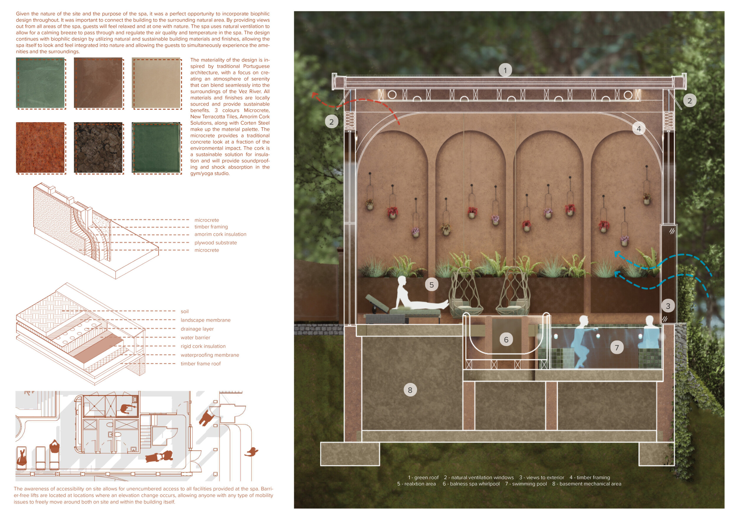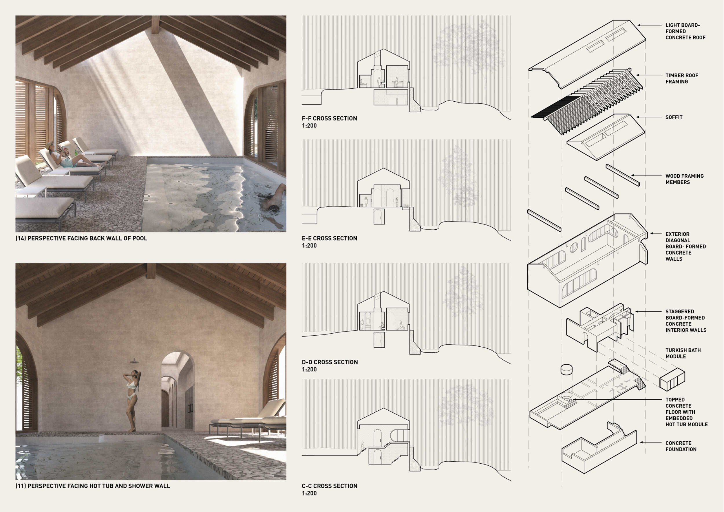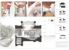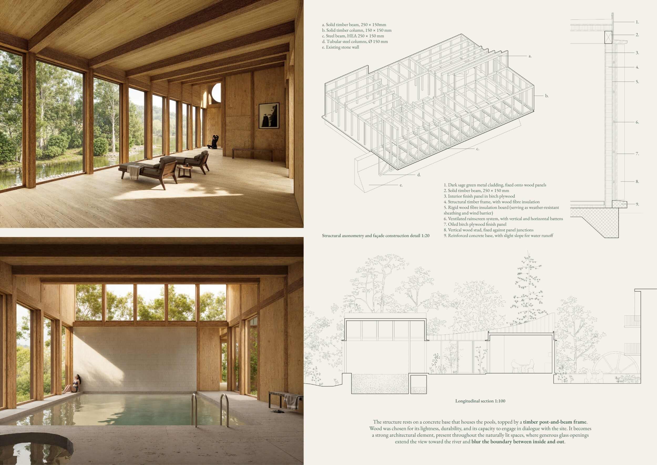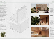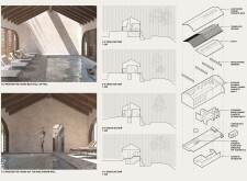 This is a sophisticated and mature proposal that effectively balances atmosphere, technical clarity, and narrative intent. The architectural expression is grounded in local typologies, but avoids pastiche through thoughtful reinterpretation and precision in detail. Diagrams are clean and legible, and the integration of structural axonometric, environmental strategies, and material references demonstrates a command of both architectural thinking and presentation craft.