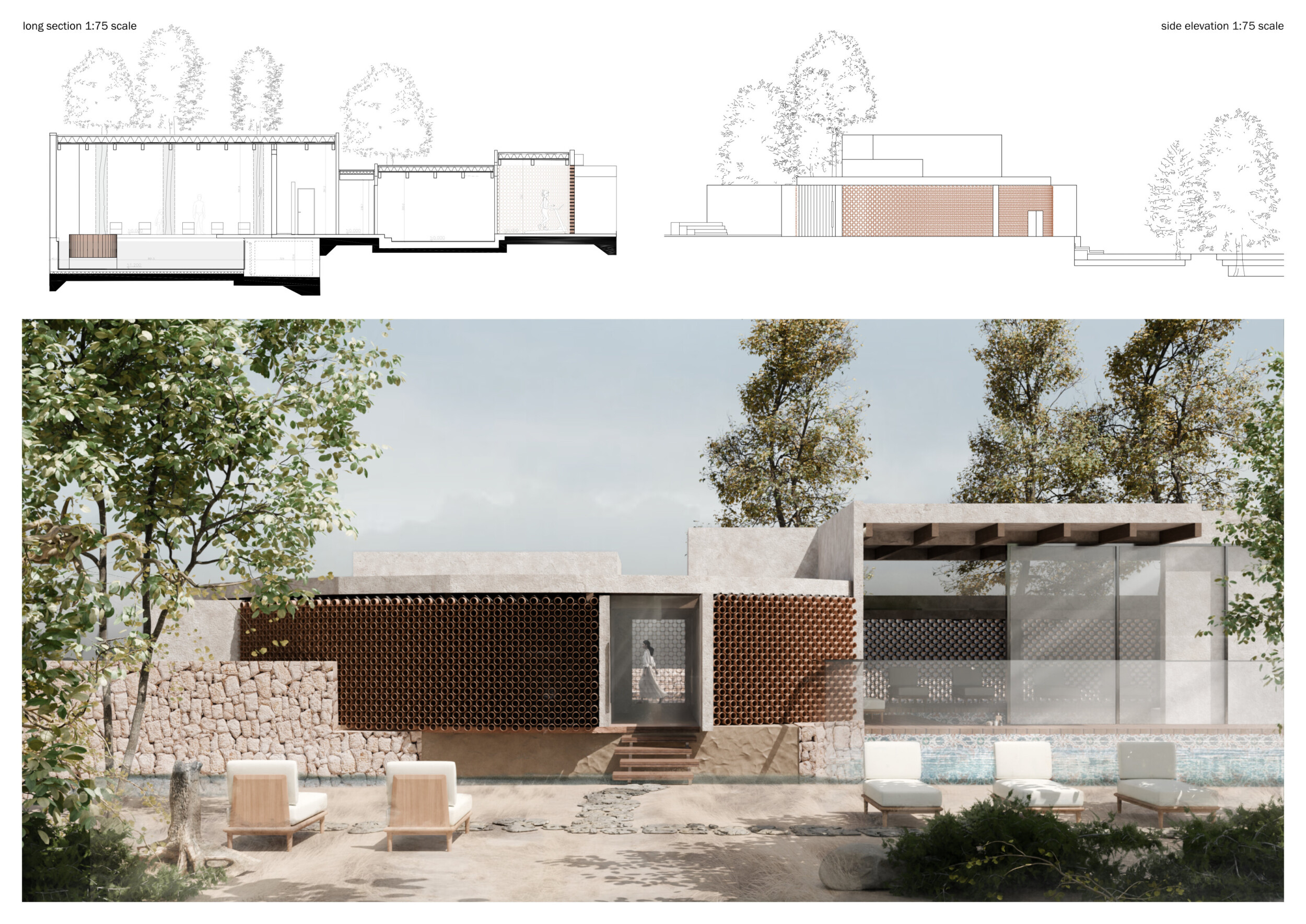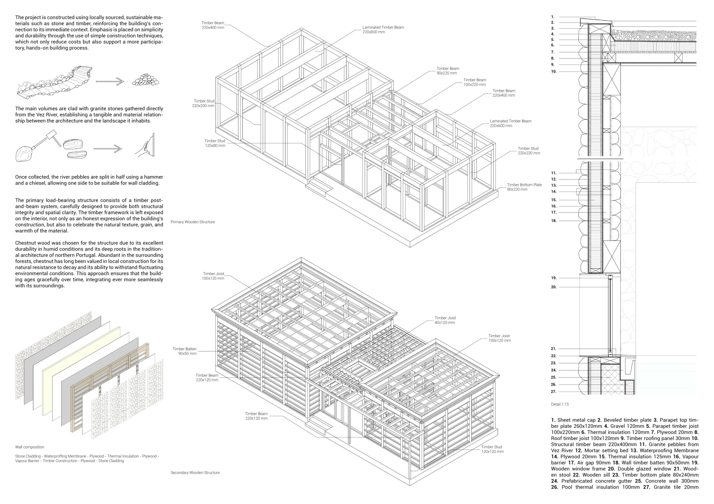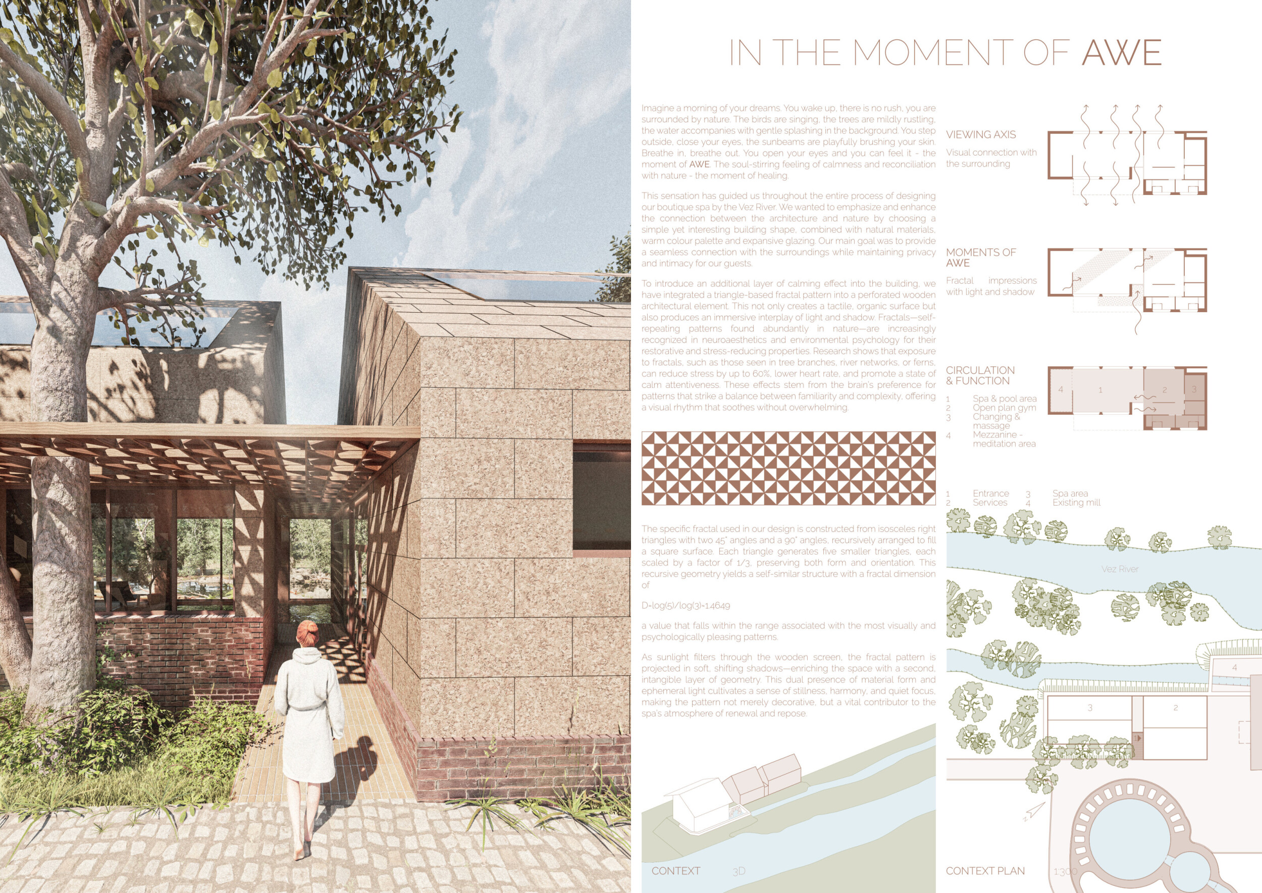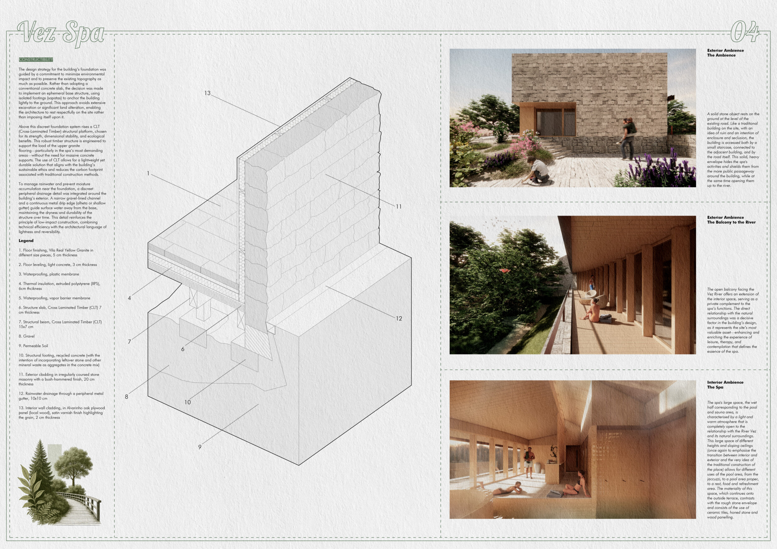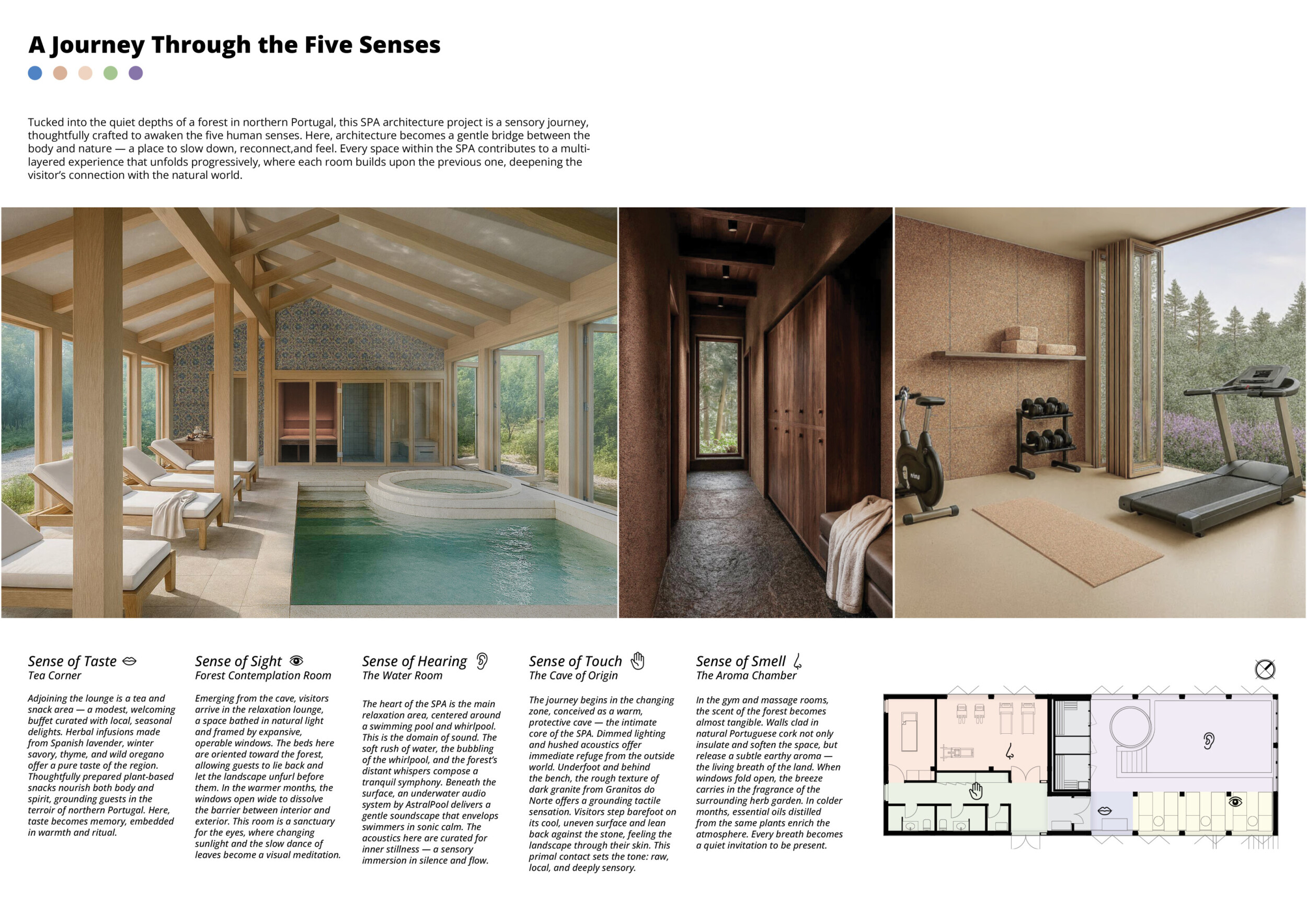 Proposals were evaluated for their ability to blend into the environment, enhance the guest experience, and embody the spirit of the Vez River—timeless, calm, and restorative. The results reflect an inspiring range of responses, from poetic interpretations of the landscape to finely crafted spatial sequences designed for relaxation and introspection.