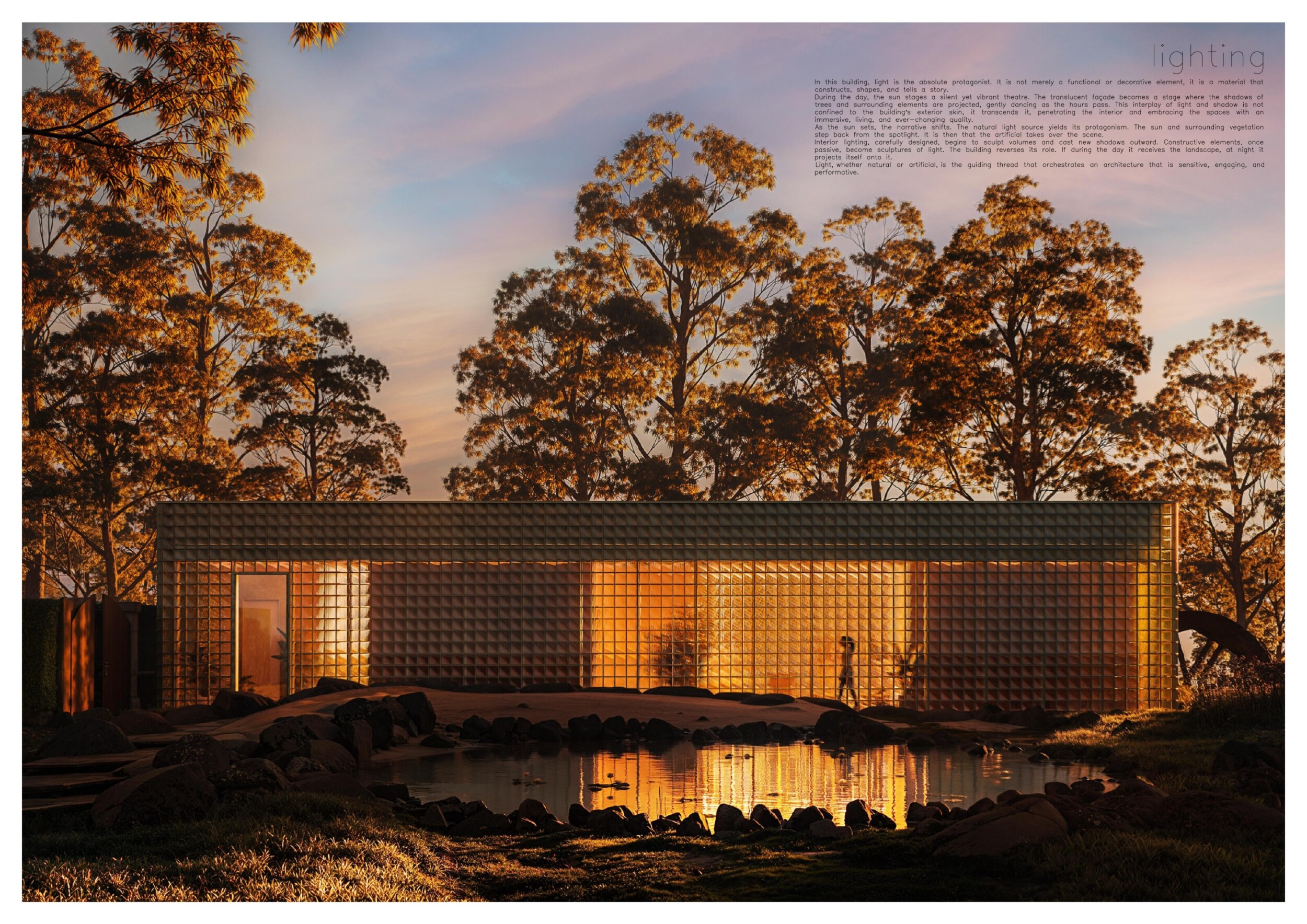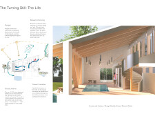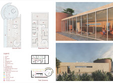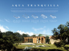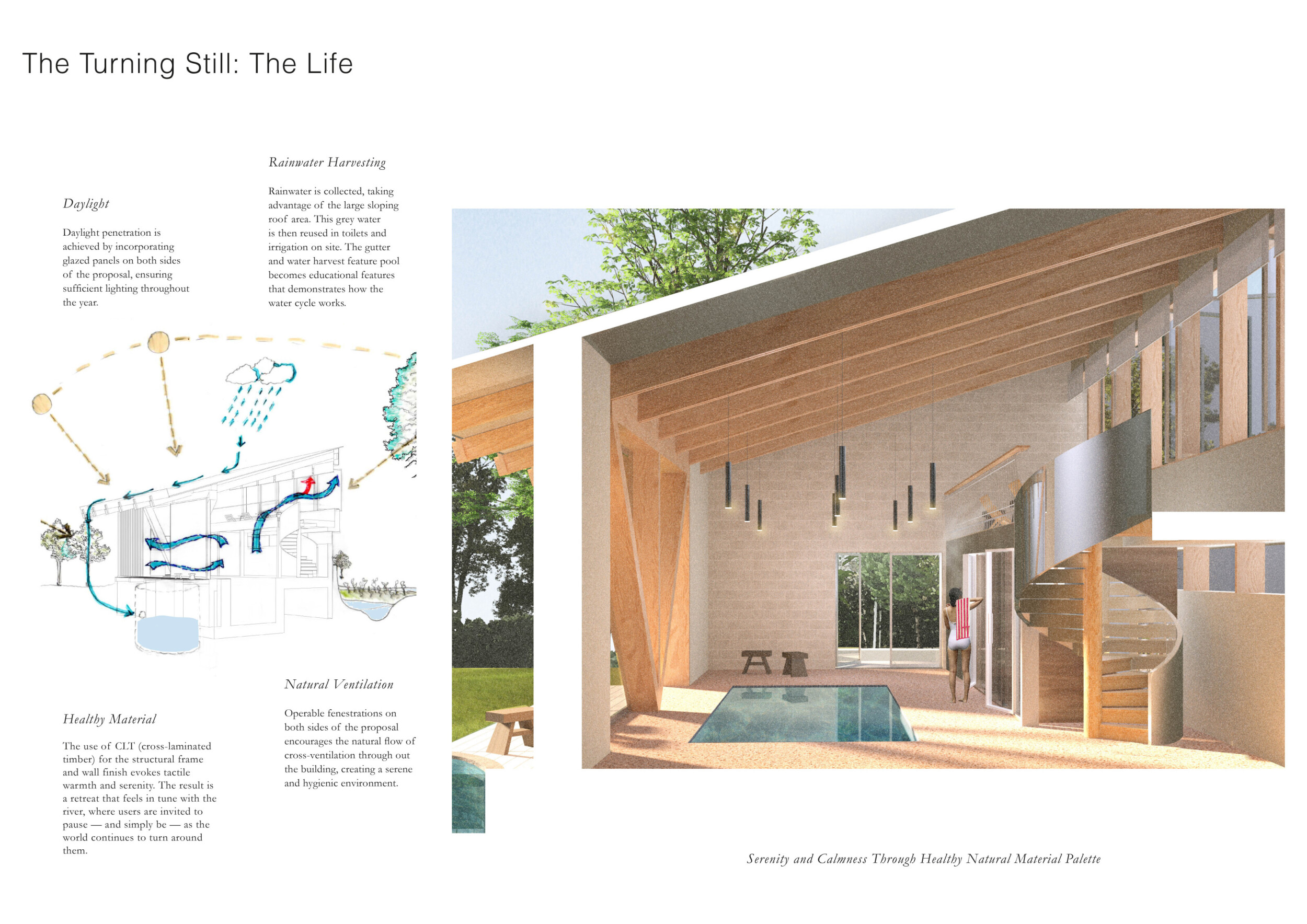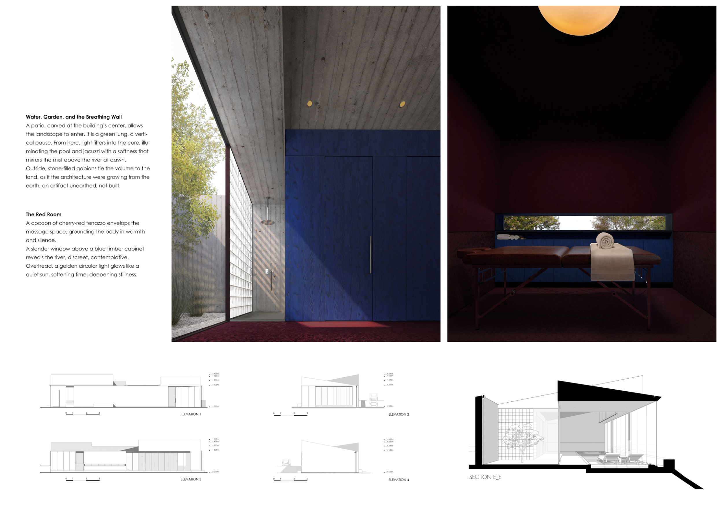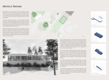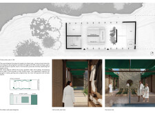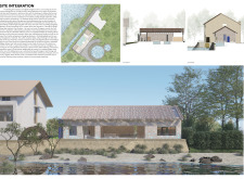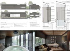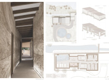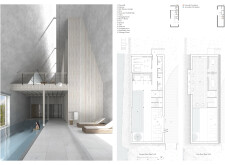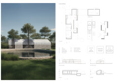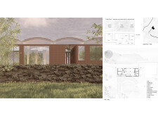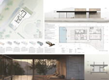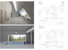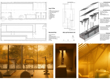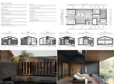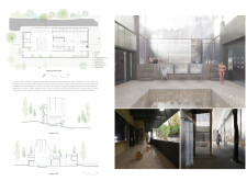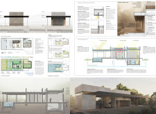 This is a cohesive and atmospheric submission that balances technical rigor with poetic expression. The layout is calm and confident, with a clear visual hierarchy that guides the viewer through site, plan, and atmosphere. Renderings are well composed and tonally consistent, complementing the drawing set without overpowering it. The text is spare but effective, anchoring the emotional tone of the project.