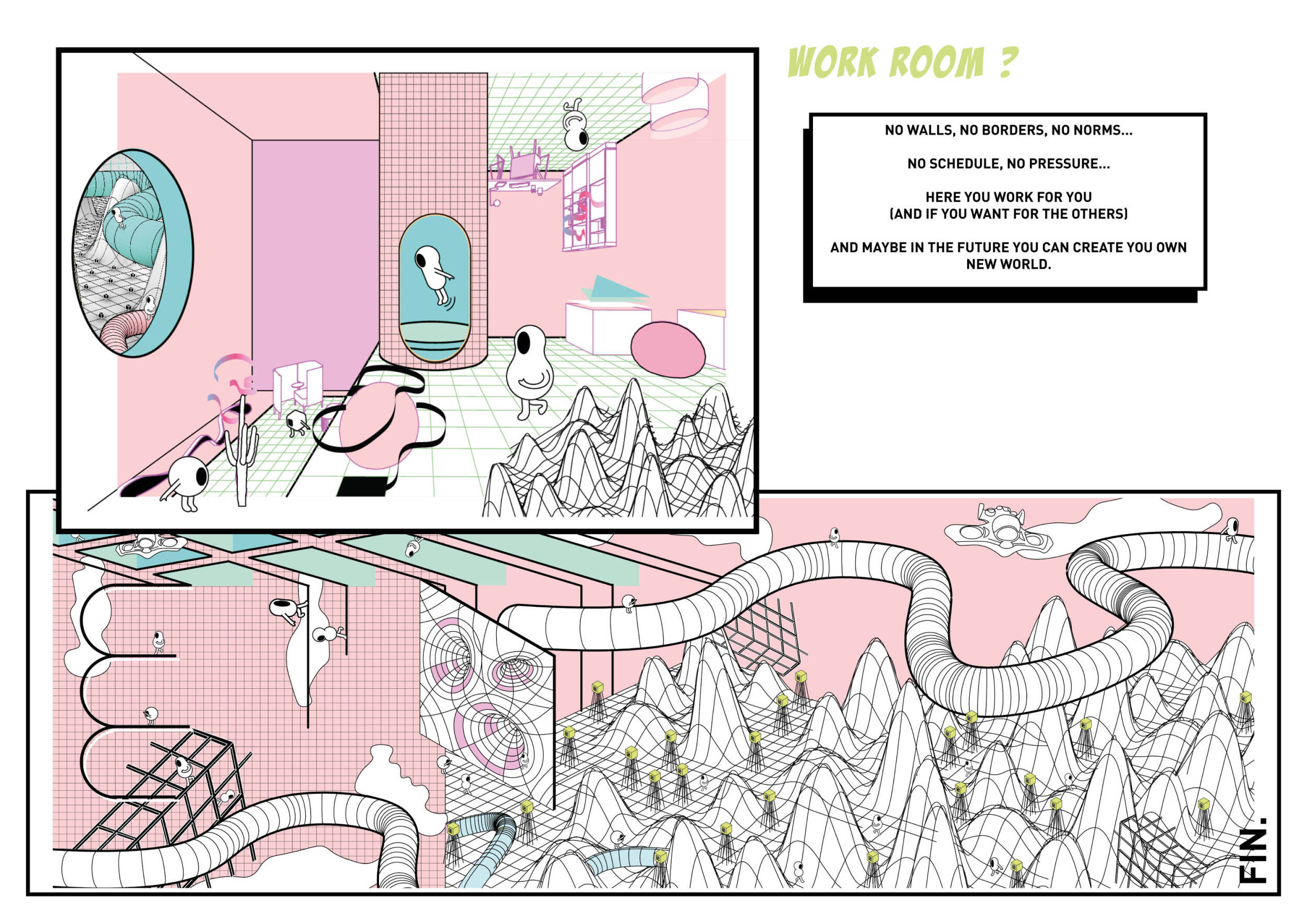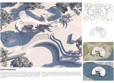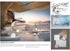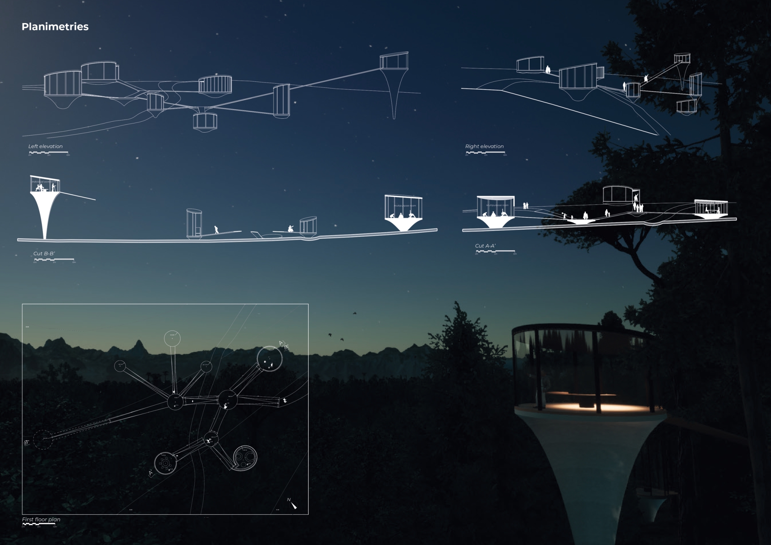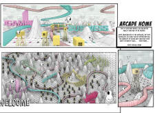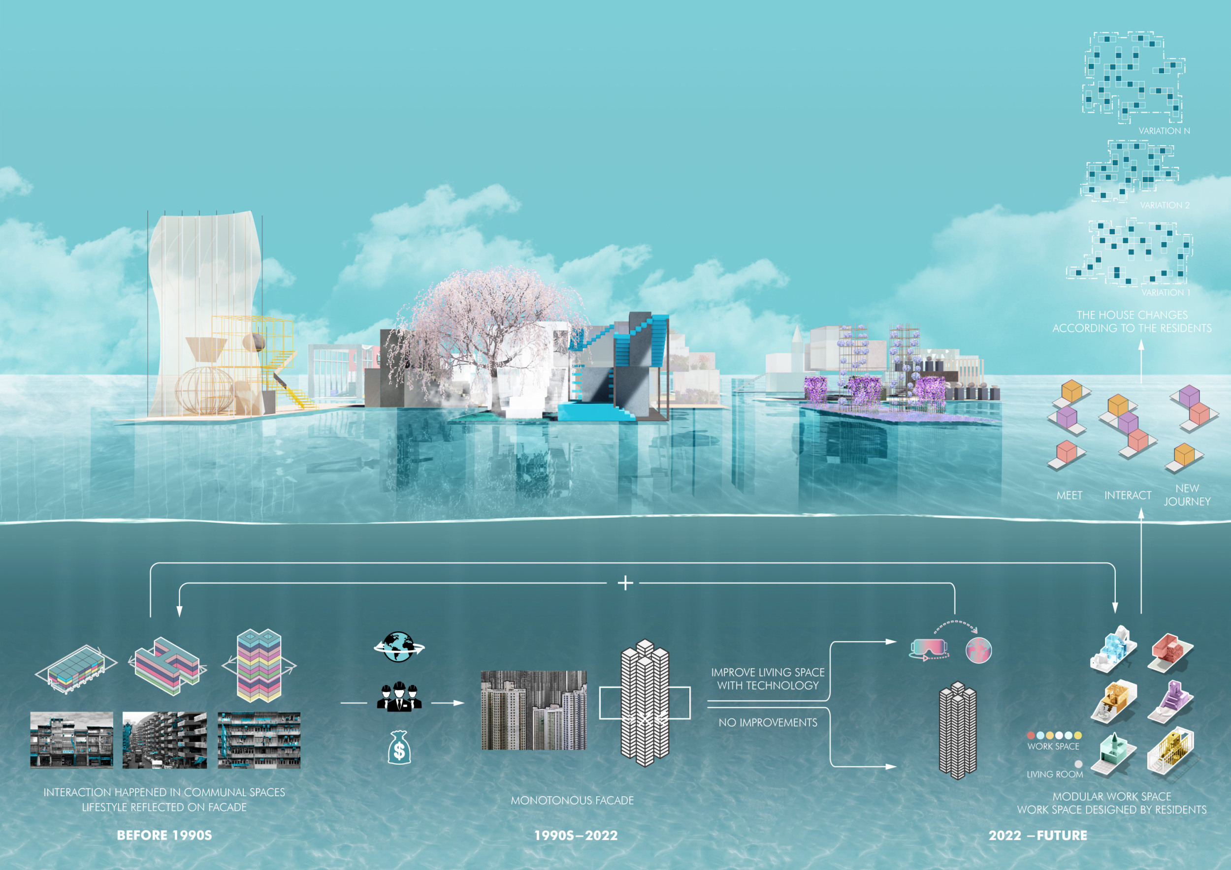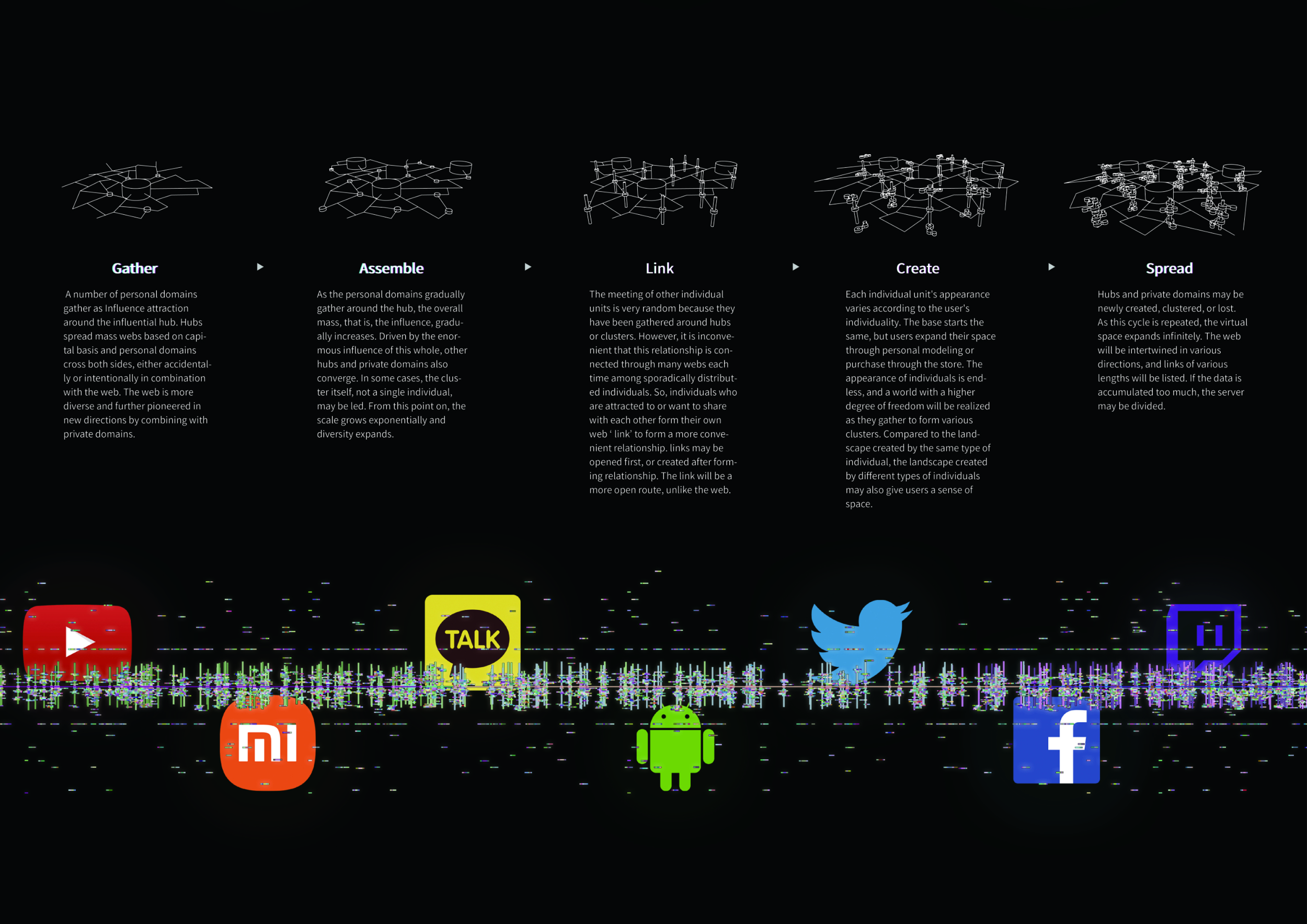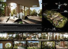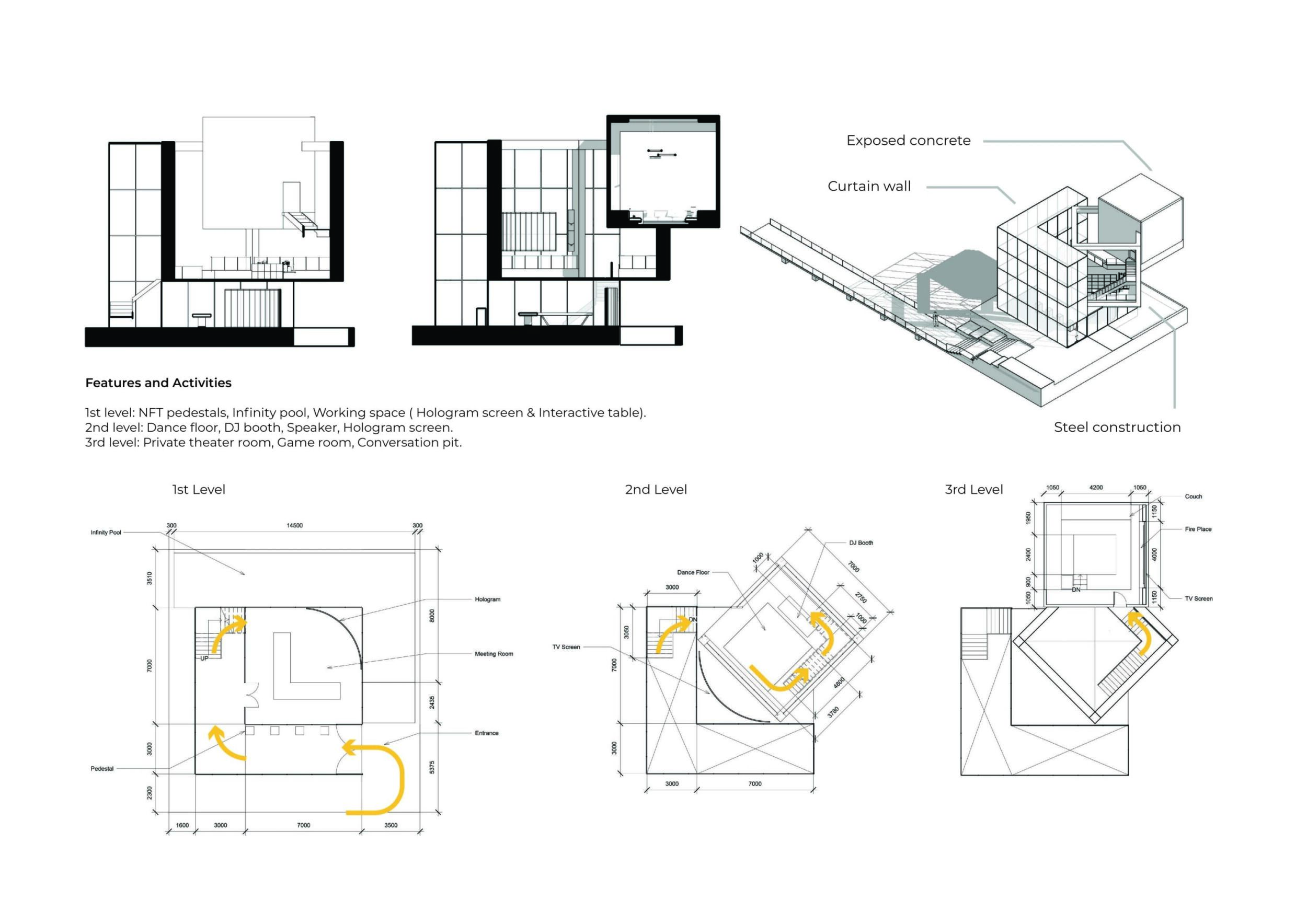 The Neo-Dimension references the film Inception, and proposes a “loop” that creates a dreamscape cubic home, with mystical vistas, gravity-defying environments, and cozy interiors that float between reality and fantasy. It considers the 6 interior and 6 exterior faces of a geometrical cube as hosts, to 12 “active spaces”. Read more The jury writes: “The subversion of the sense of orientation and gravity is a blow to other projects that depict the cliche of a house in the cliff or the mountain or any idyllic landscape. This is a very strong project because it invents rules on how a digital real estate realm may be constructed, defying the rules and constraints of the physical realm - gravity, physics. It does not transfer the ideal home in a digitized world, but instead constructs a new series of values. There are no illogical spaces like a bedroom, or bathroom - all the rooms are instead meaningful to a virtual space. It studies varying levels of security and privacy. It explores the limits of the virtual world, where none of our physical laws are applicable. The concept is elaborate and gives room to imagination and adventure. The chosen graphic language is very appropriate for the family of ideas at stake.”