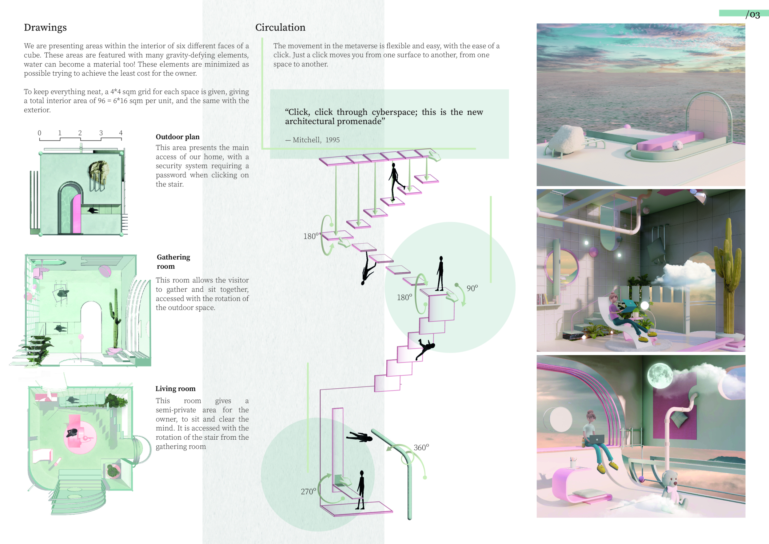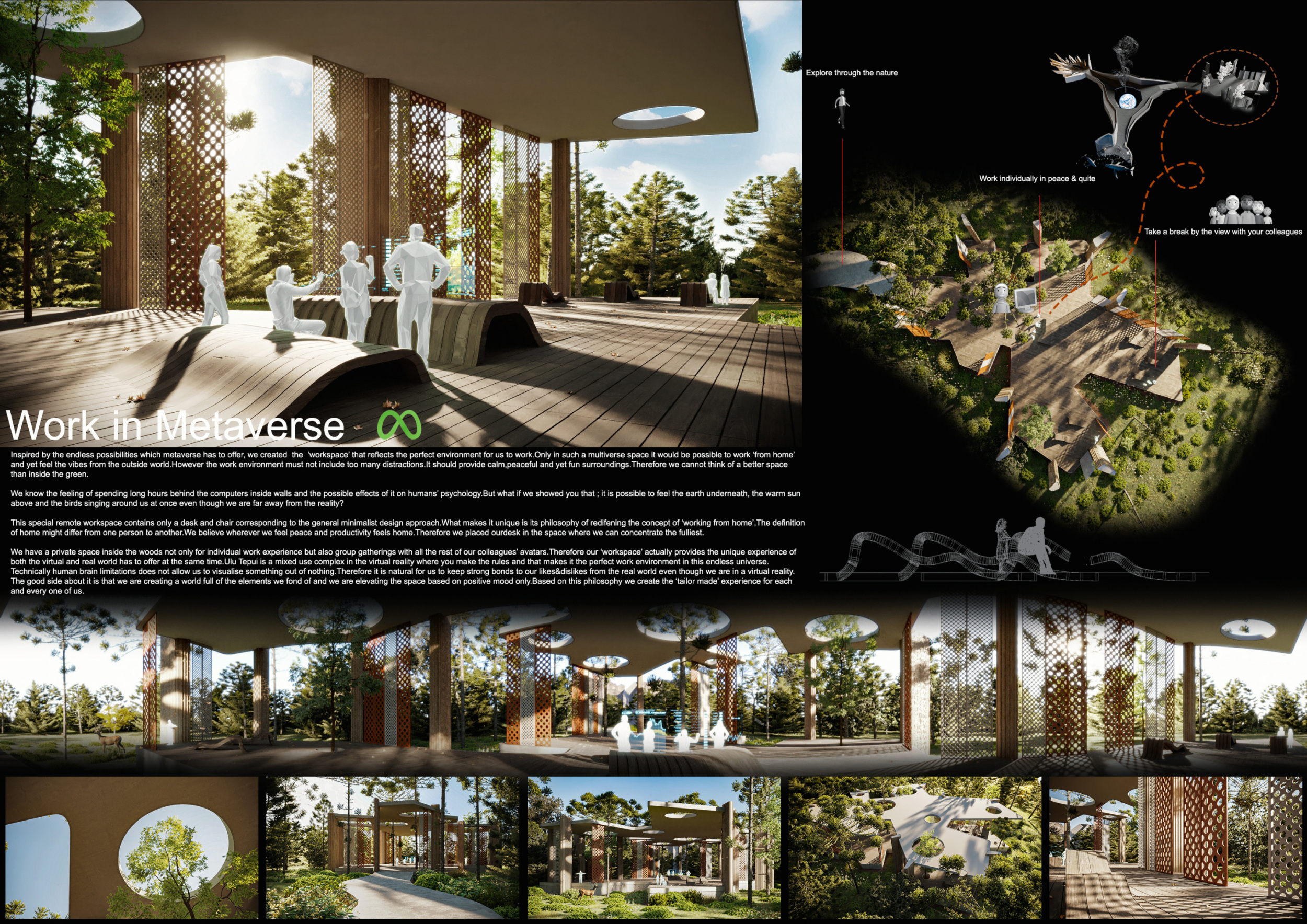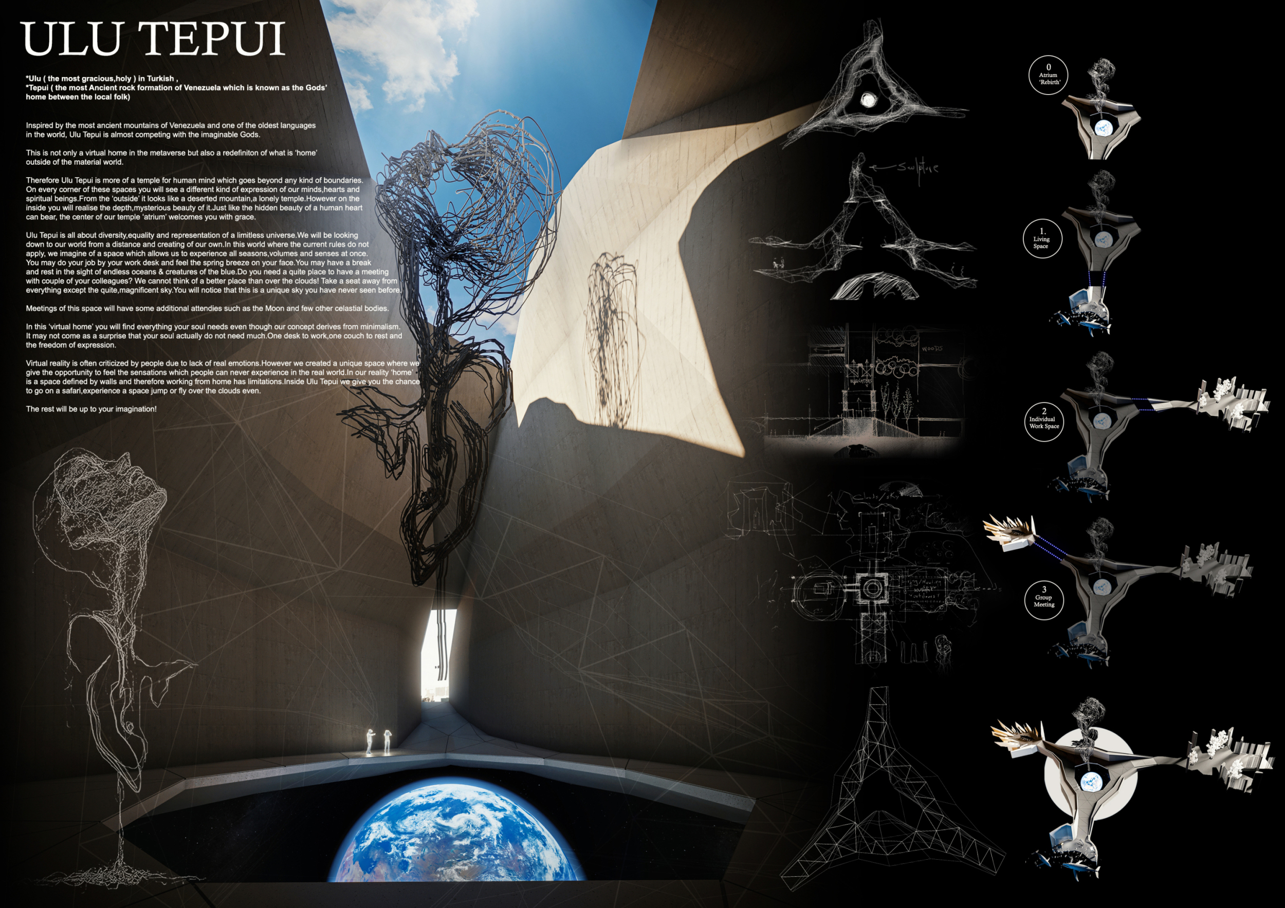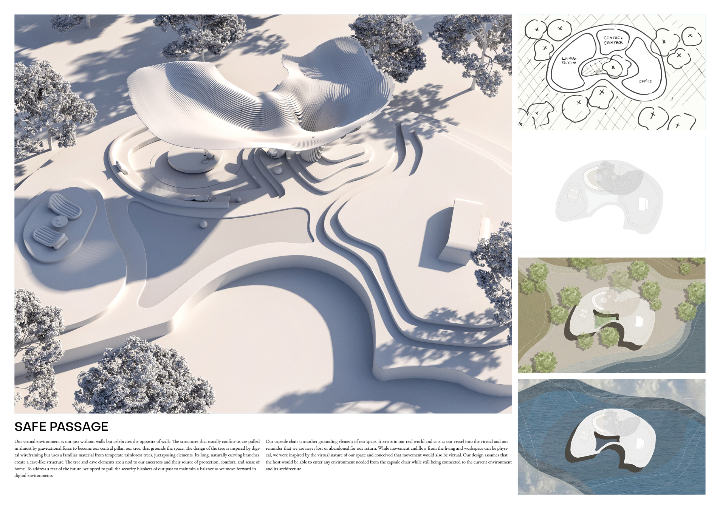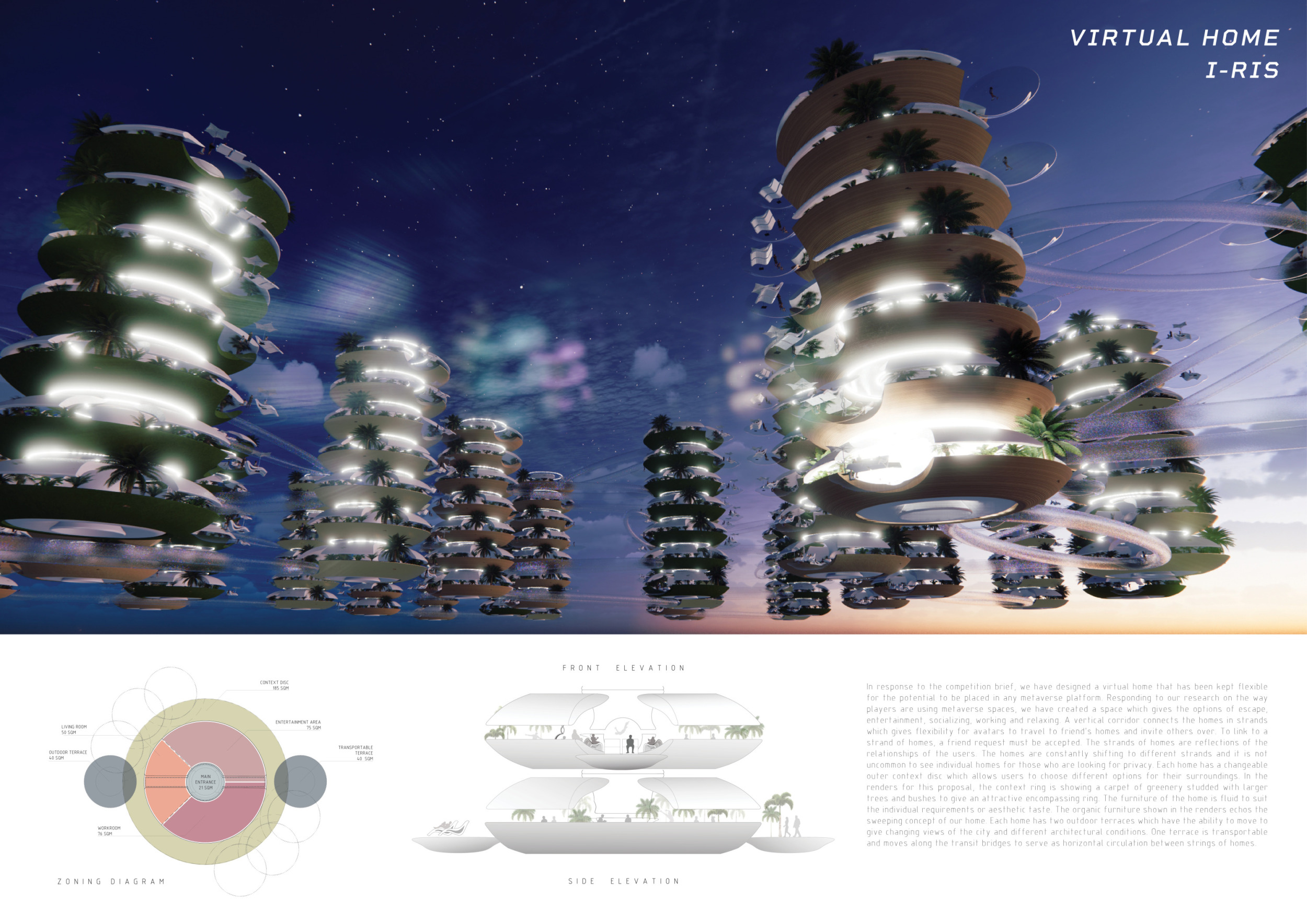 We believe participating in architecture competitions is a great way to challenge yourself to find innovative and creative solutions to design problems. For this specific competition, the chance to explore and play with a virtual environment was very exciting for us. We felt very "free" throughout the process since the scope of the competition allowed us to experiment with different elements and go beyond limits.