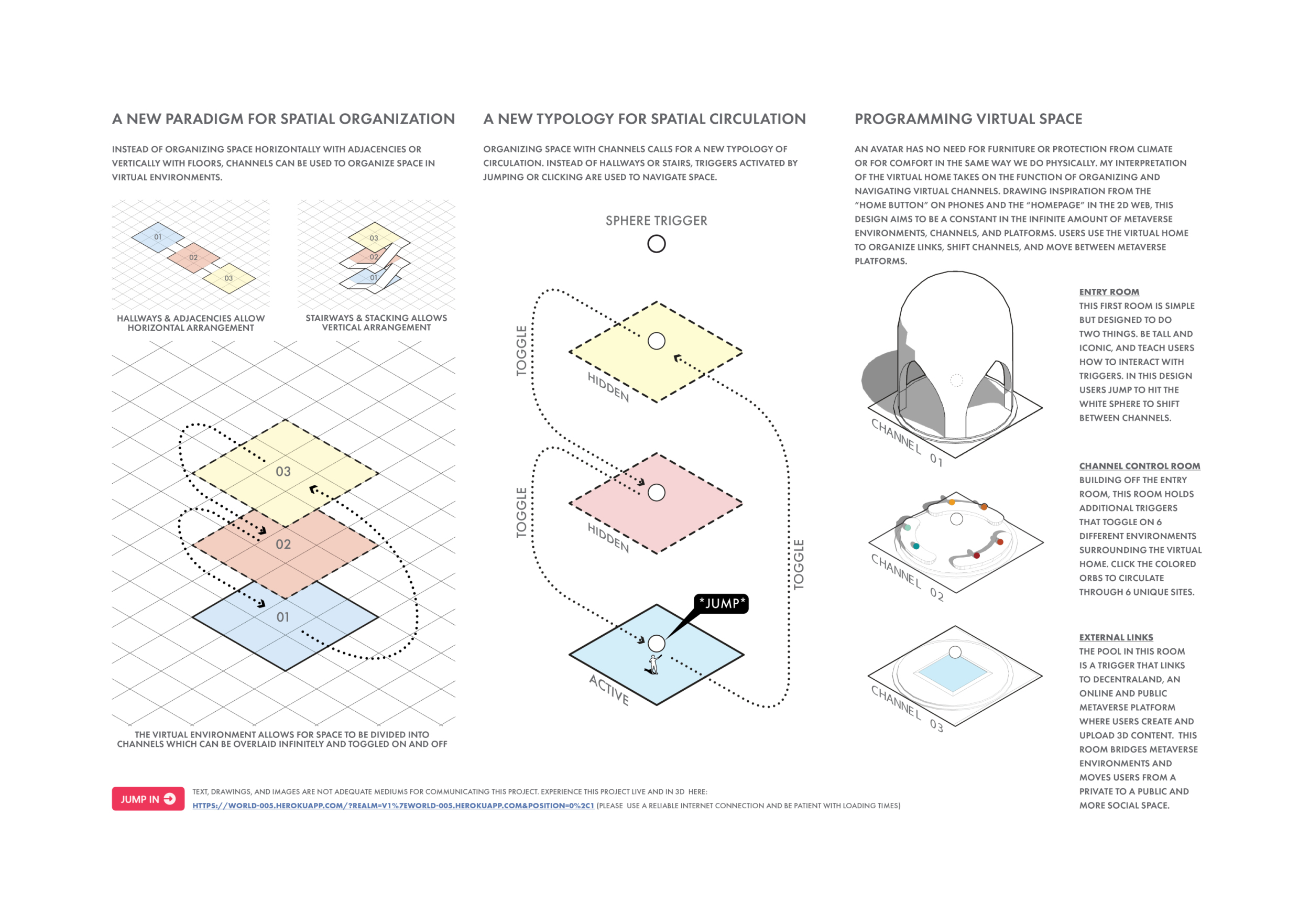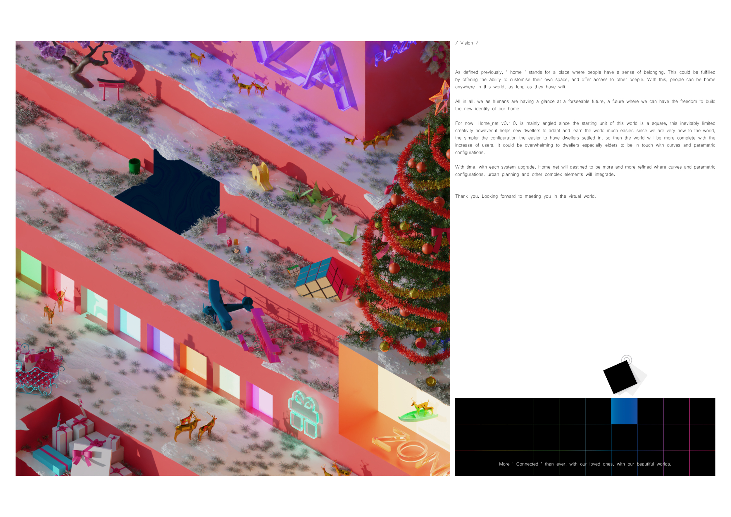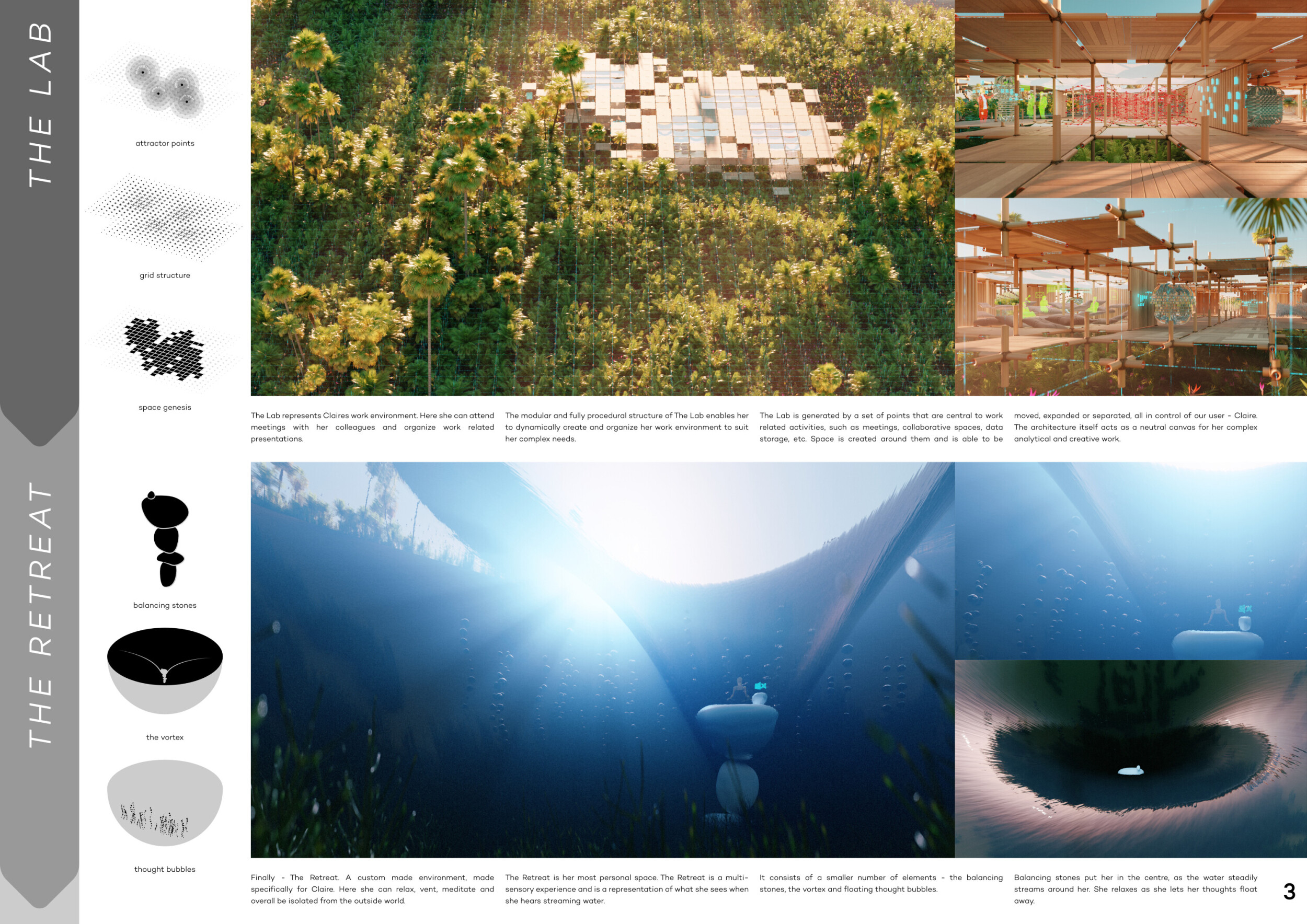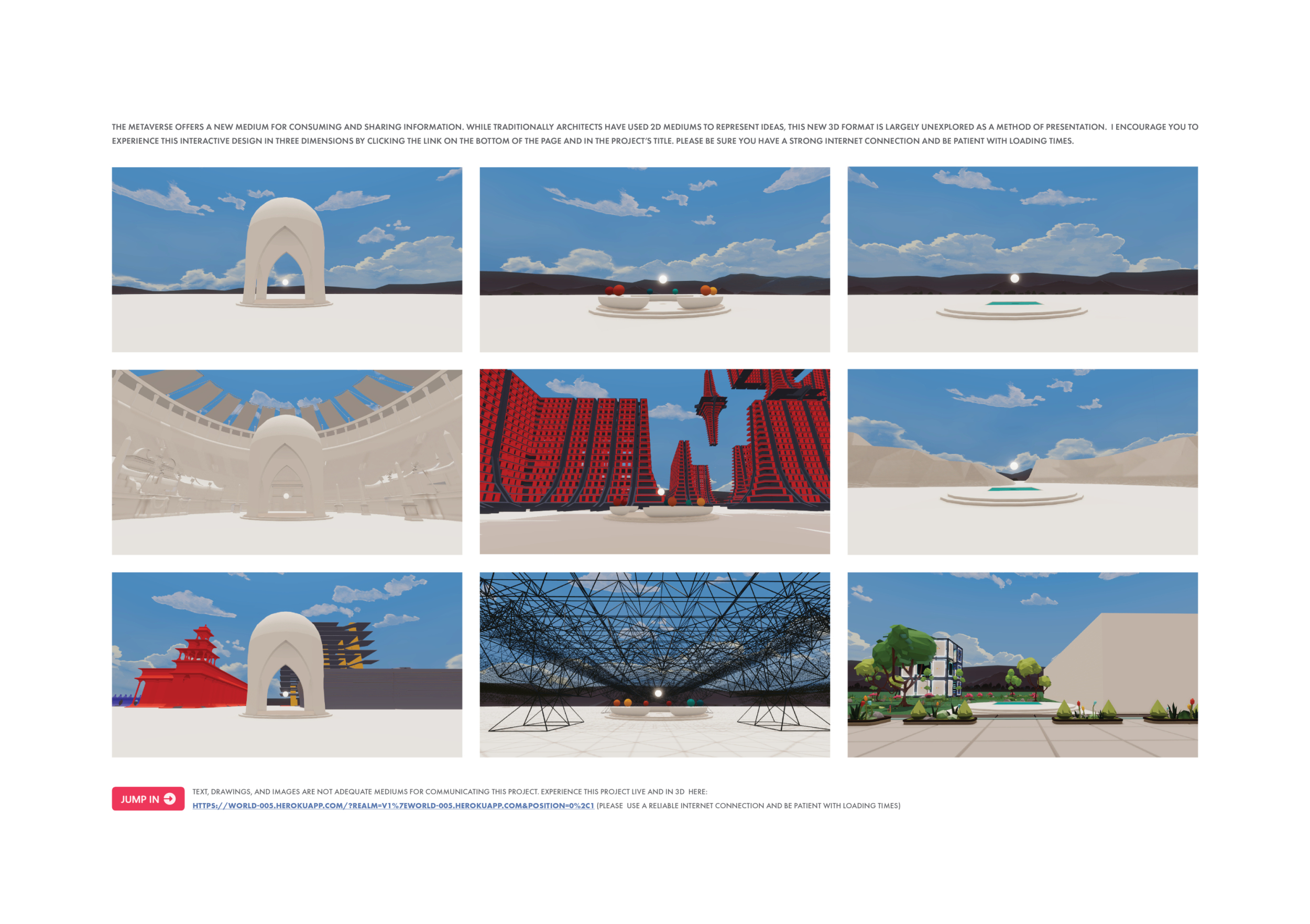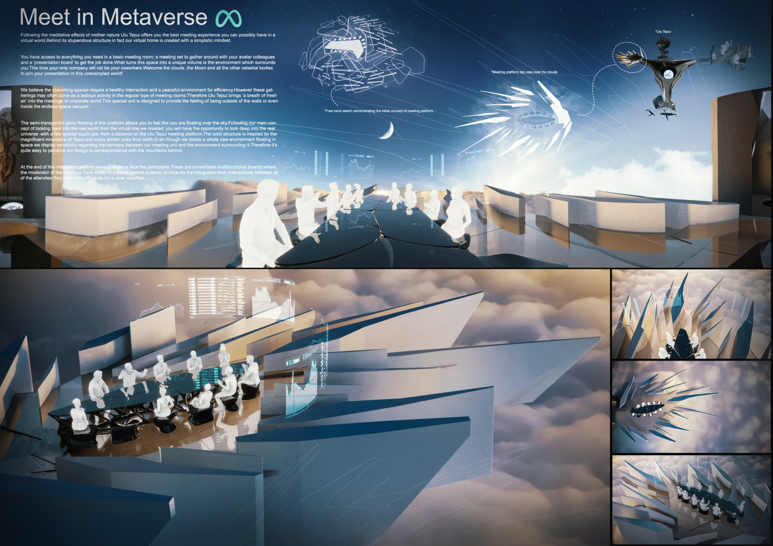 We believe participating in architecture competitions is a great way to challenge yourself to find innovative and creative solutions to design problems. For this specific competition, the chance to explore and play with a virtual environment was very exciting for us. We felt very "free" throughout the process since the scope of the competition allowed us to experiment with different elements and go beyond limits.
