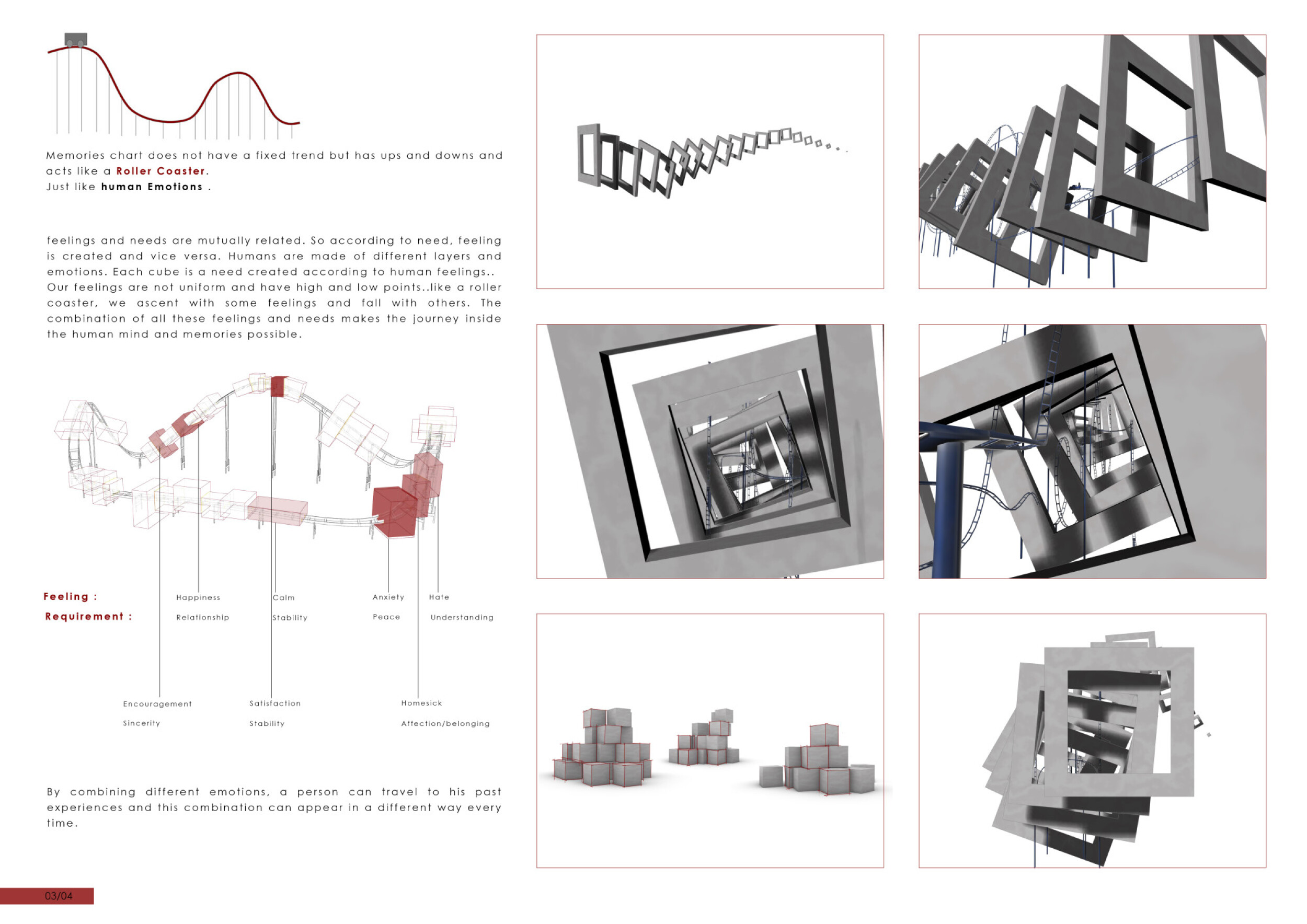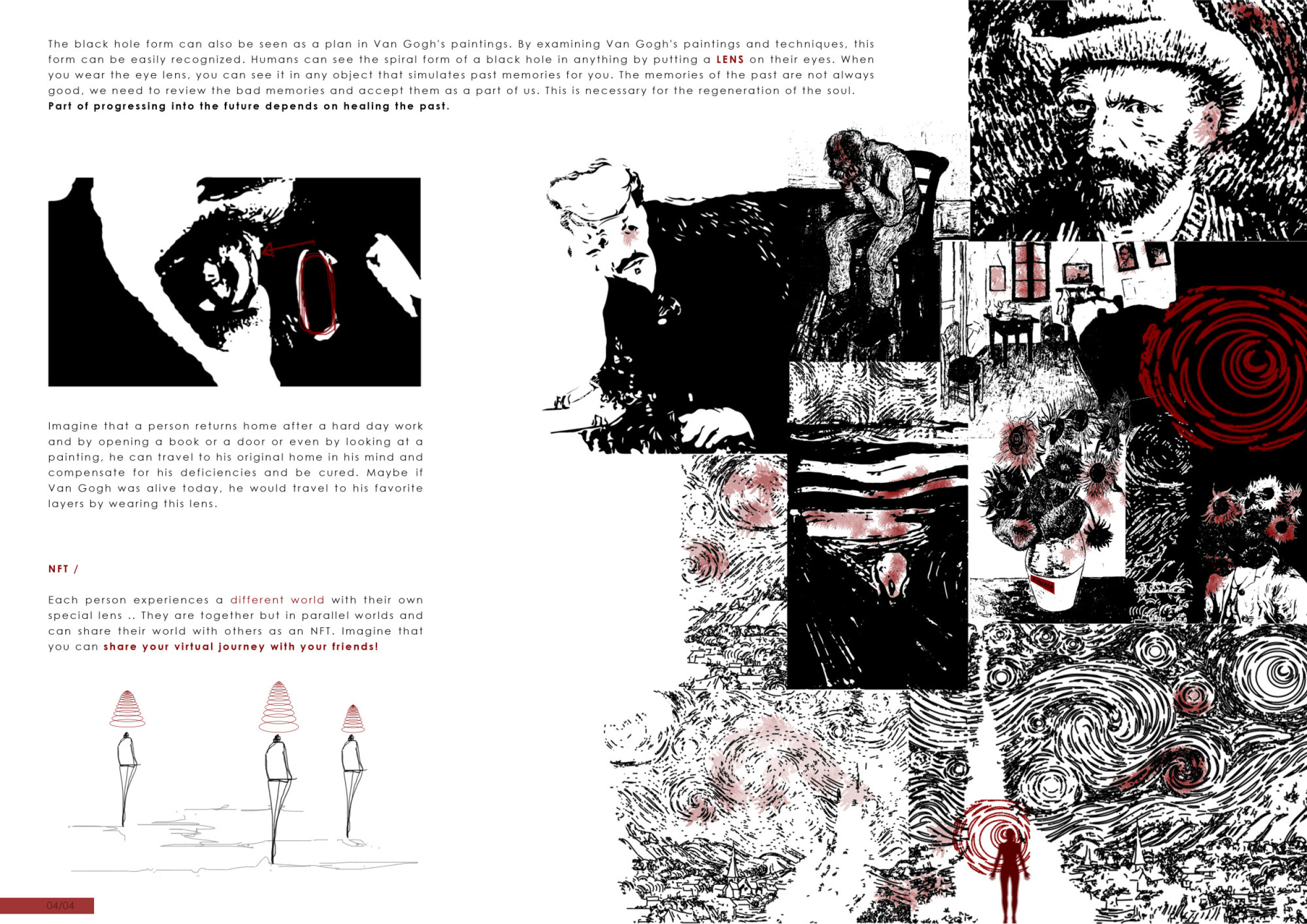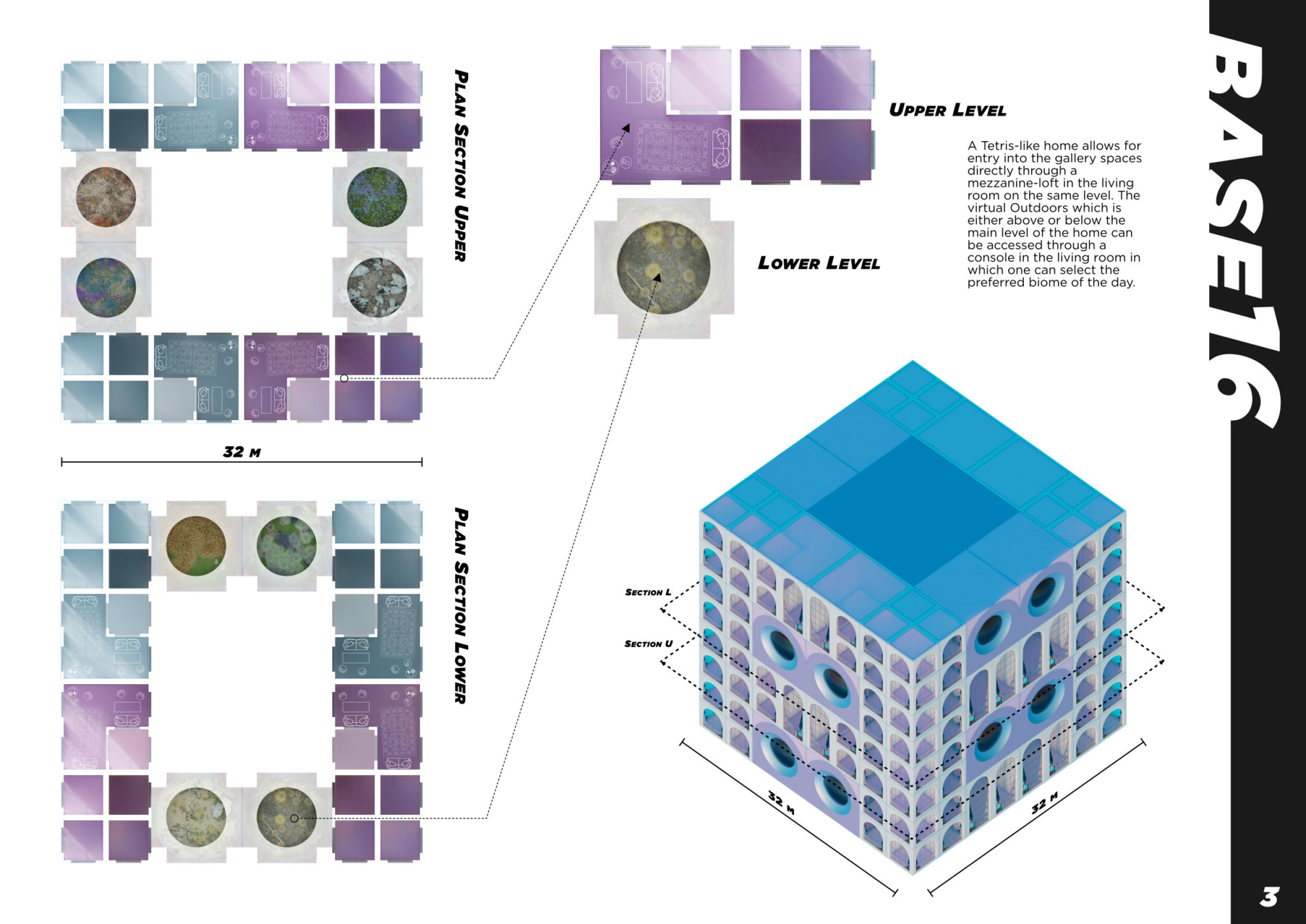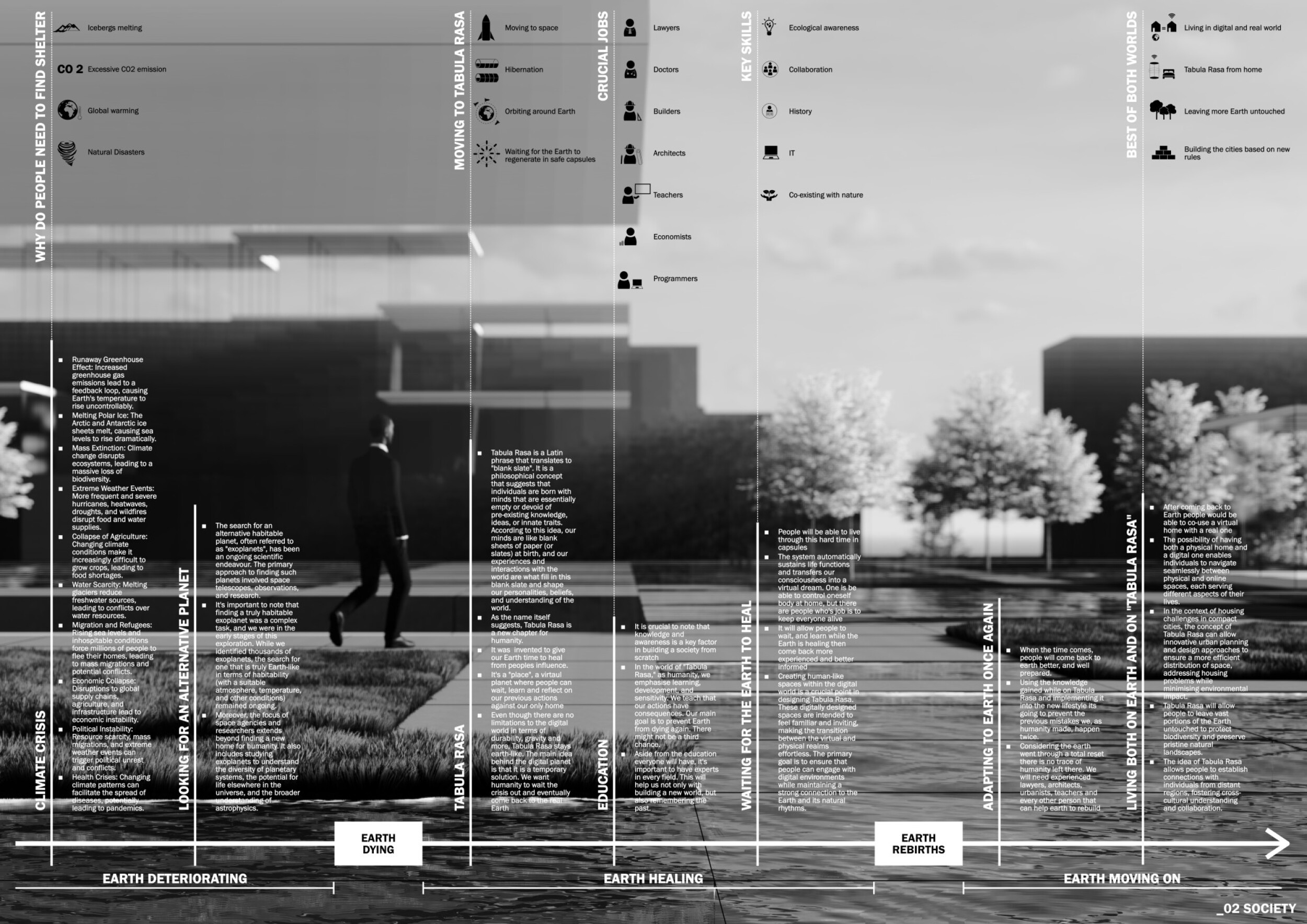 While the project is conceptually strong and offers a wide range of well-developed renderings, it would greatly benefit from more consistent layout and information conveyed across the four sheets. The varied layouts make it challenging for a viewer to simply navigate. The sheets are also overwhelmingly dark in color. Rather than blackness the author might explore the positive effects of lighter colors and daylight. The texts would benefit from reduced length and larger font sizes.