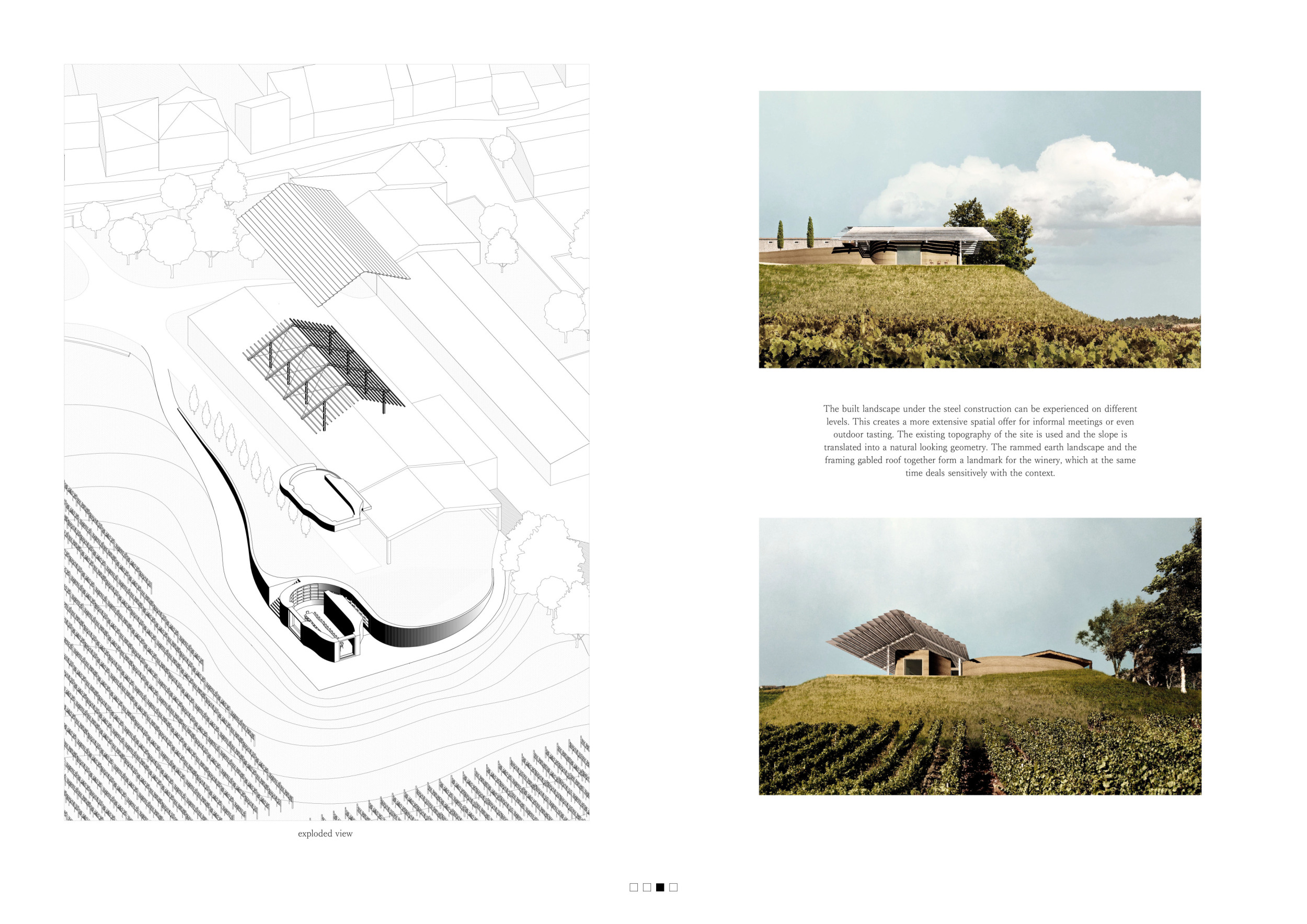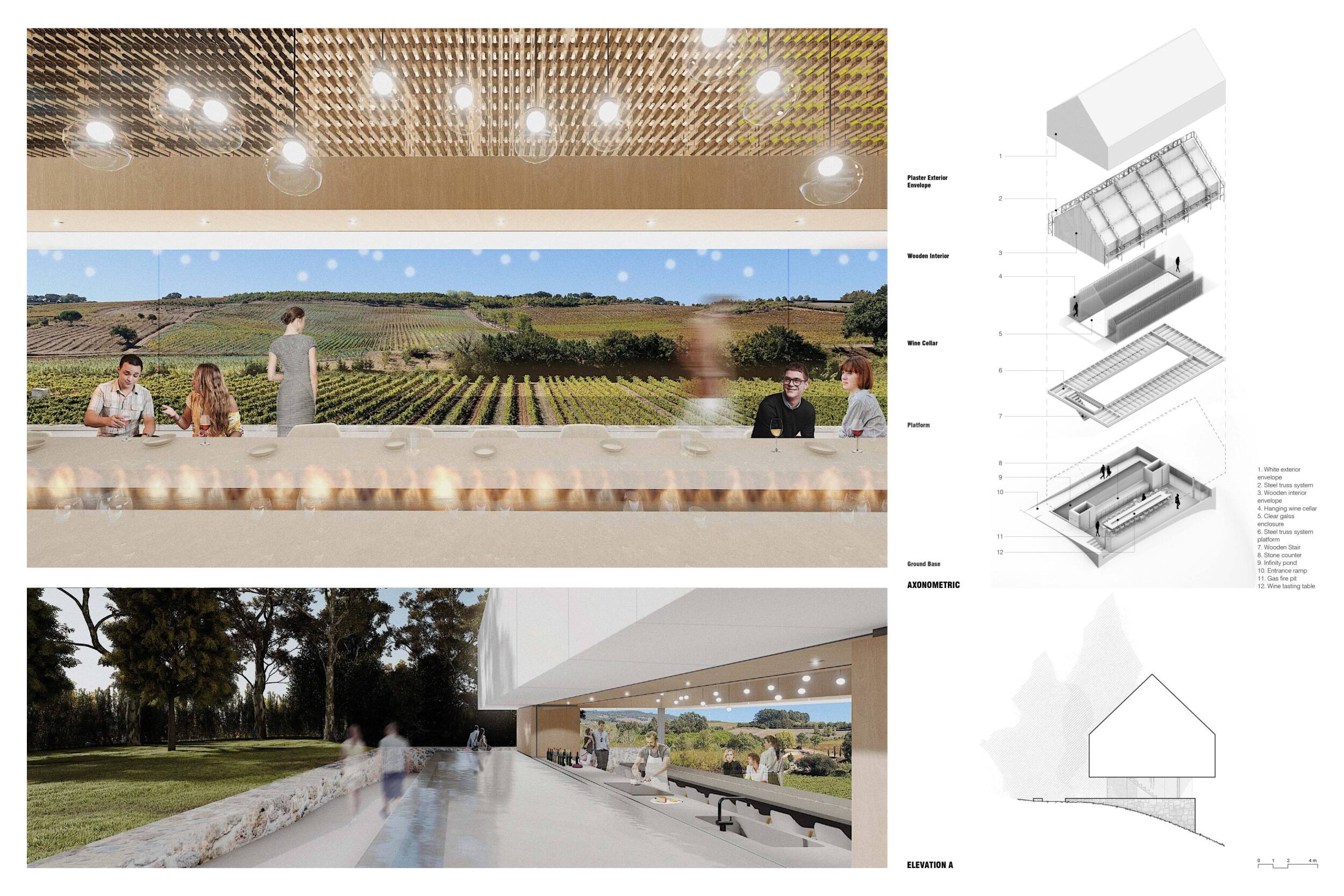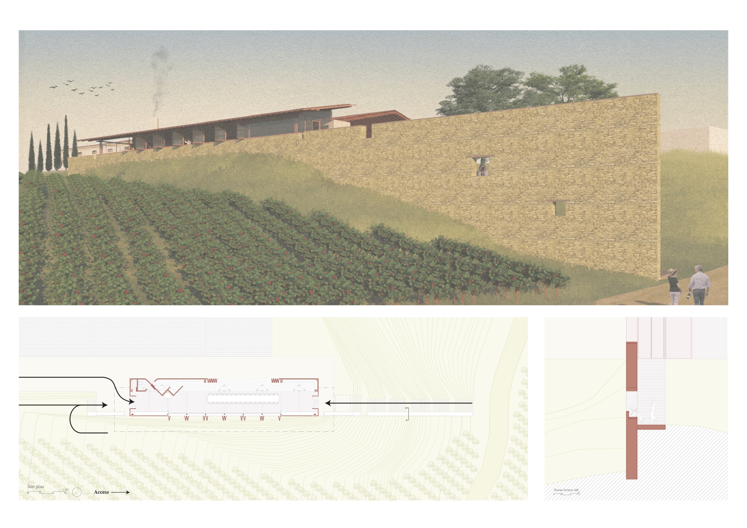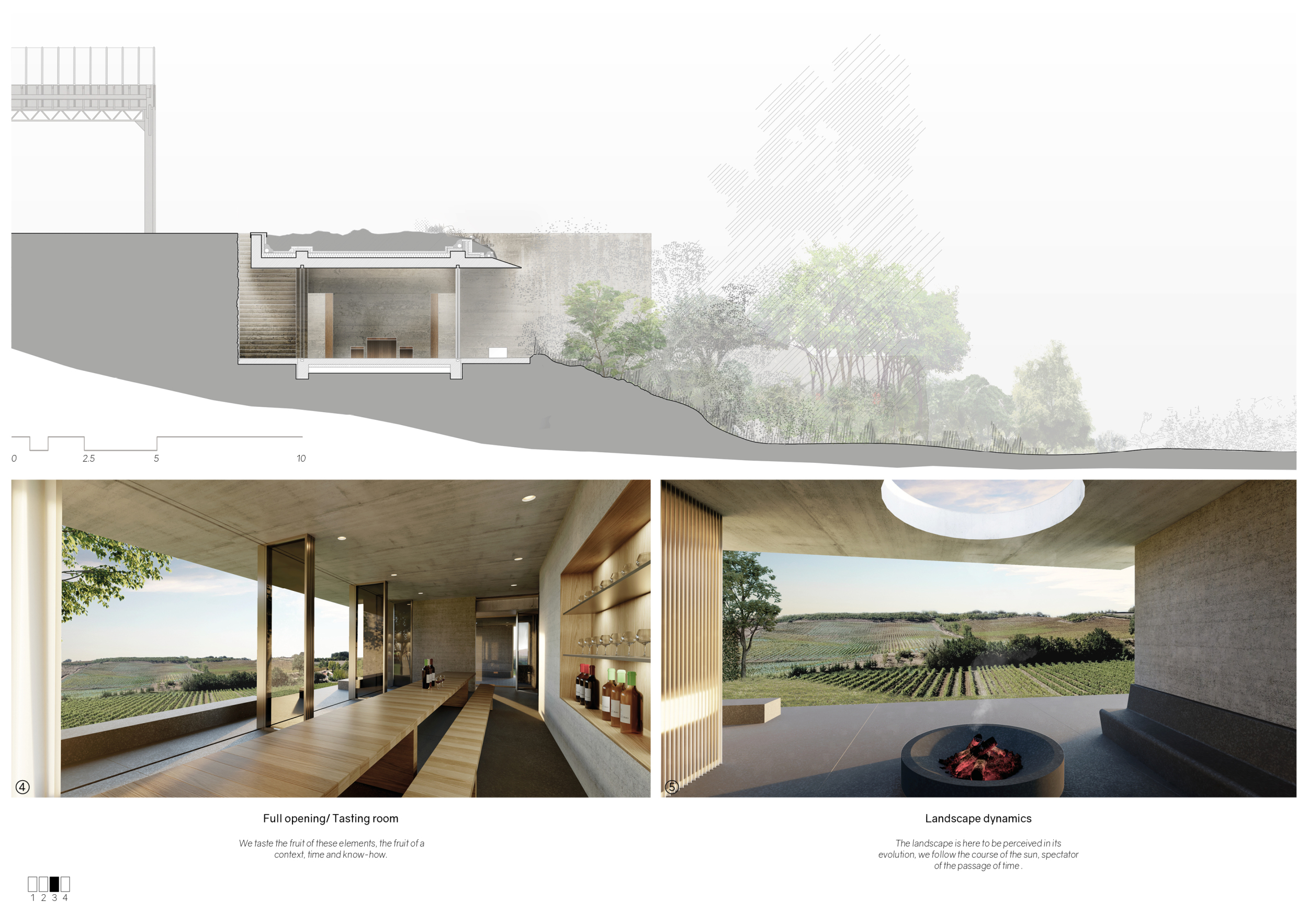 The jury evaluated designs for their capacity to offer a unique space to the vineyard, and sought proposals that made use of natural materials. The received proposals experimented with a host of ideas for integrating the new project within the site. Given the elevated conditions of the existing buildings, proposals conceived of a mix of above-grade concepts as well as constructions carved into the hillside.