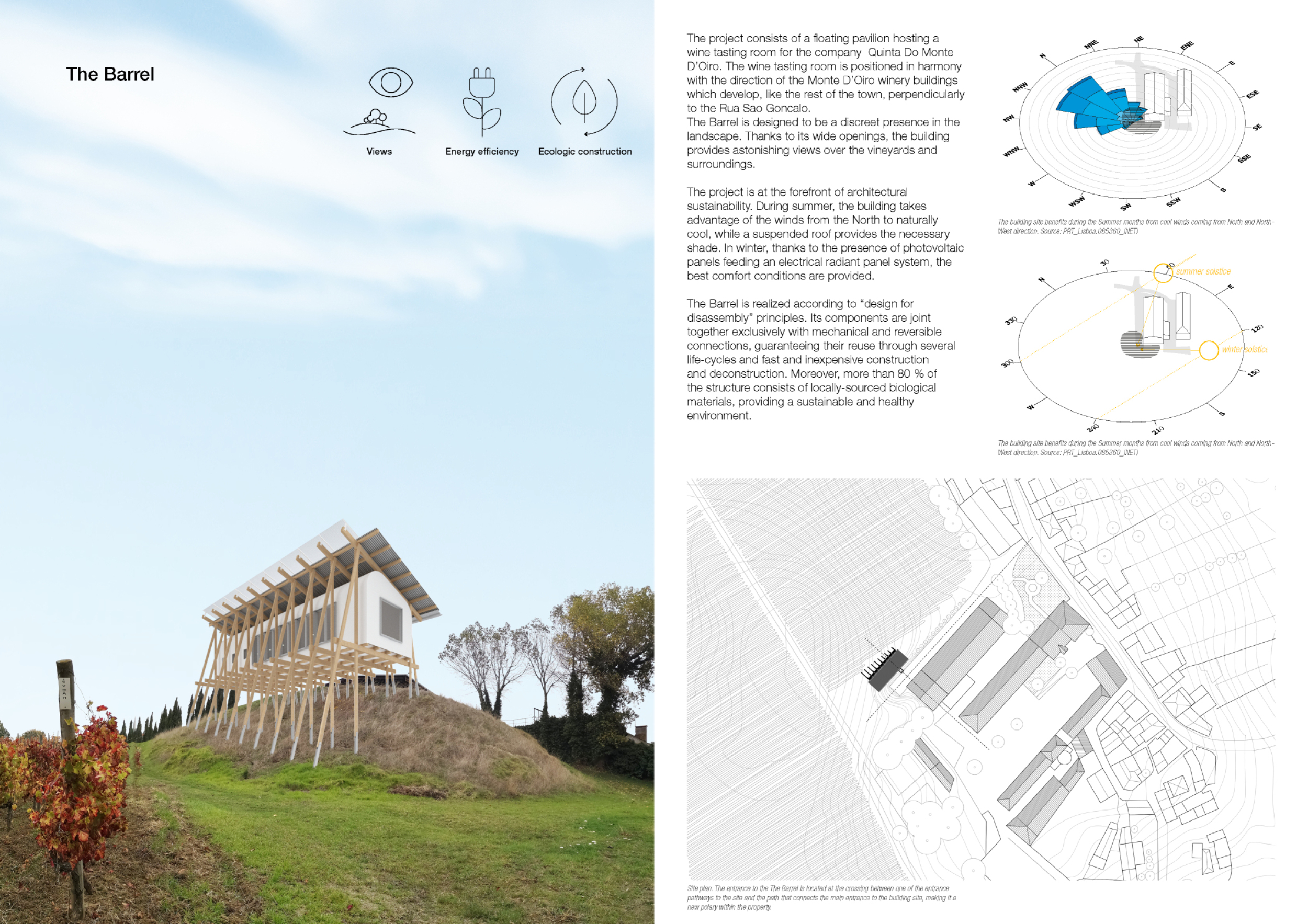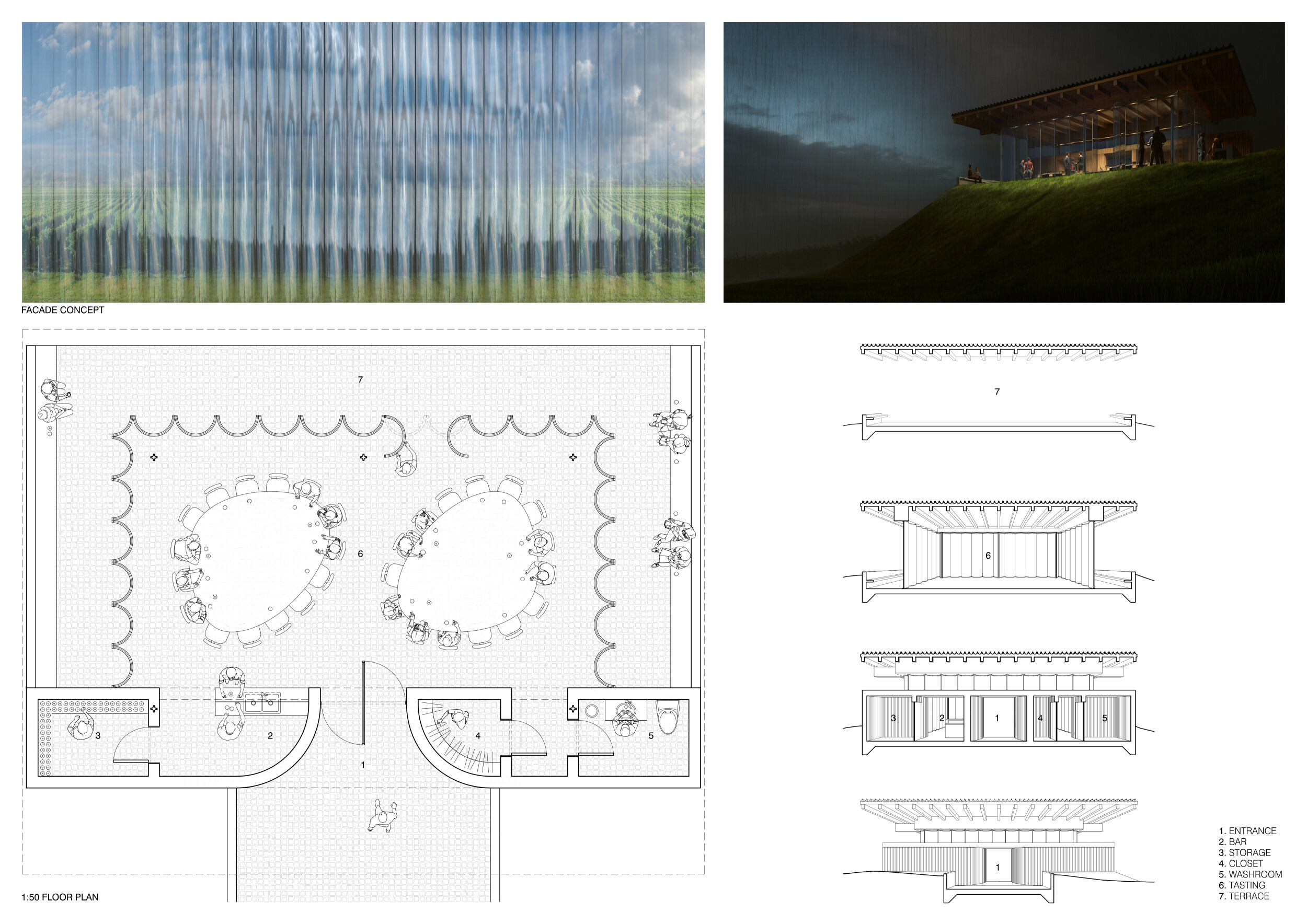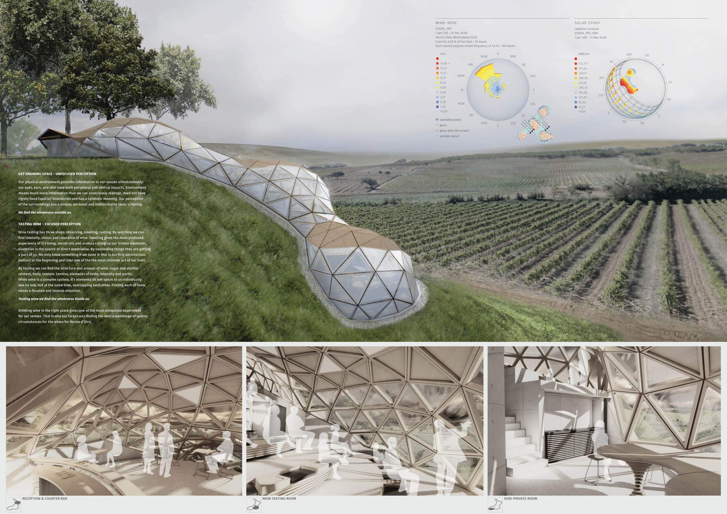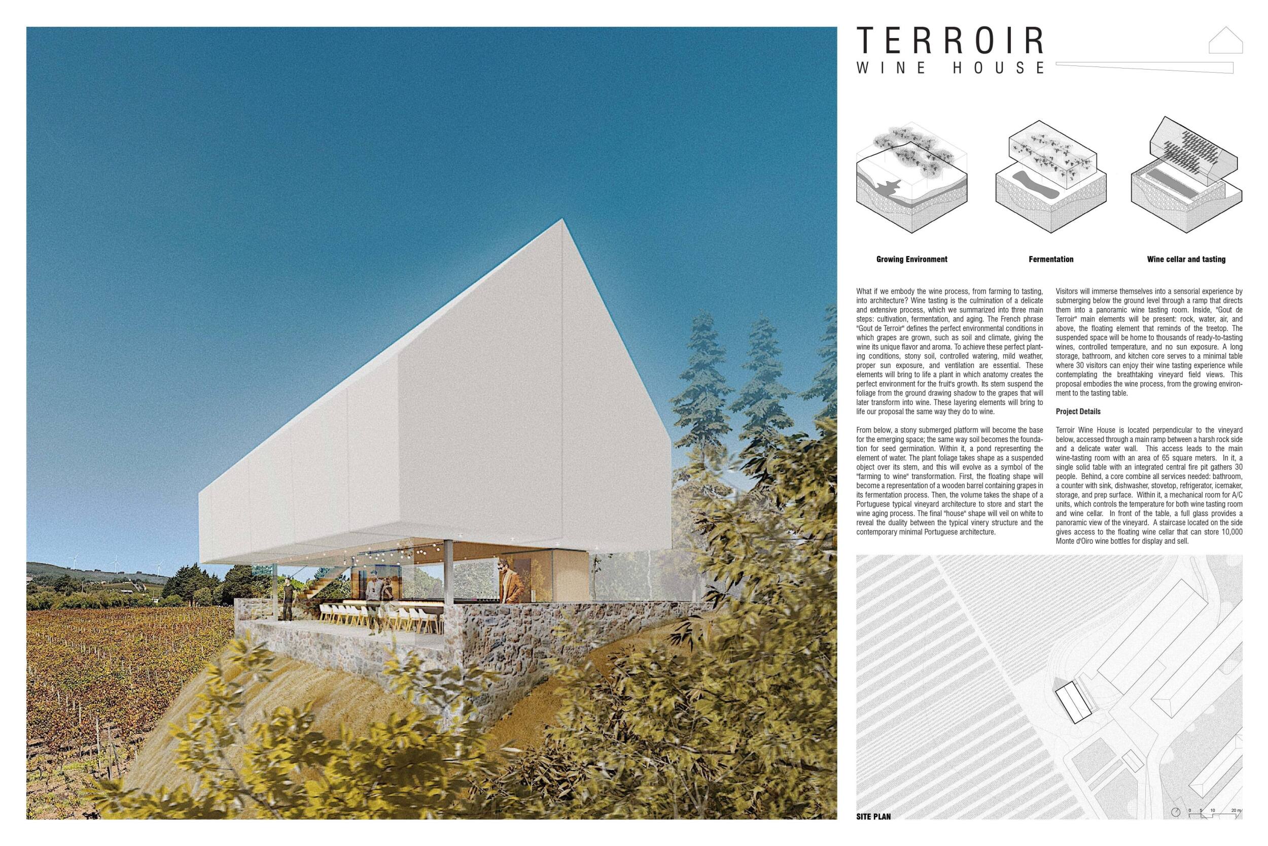 The jury evaluated designs for their capacity to offer a unique space to the vineyard, and sought proposals that made use of natural materials. The received proposals experimented with a host of ideas for integrating the new project within the site. Given the elevated conditions of the existing buildings, proposals conceived of a mix of above-grade concepts as well as constructions carved into the hillside.