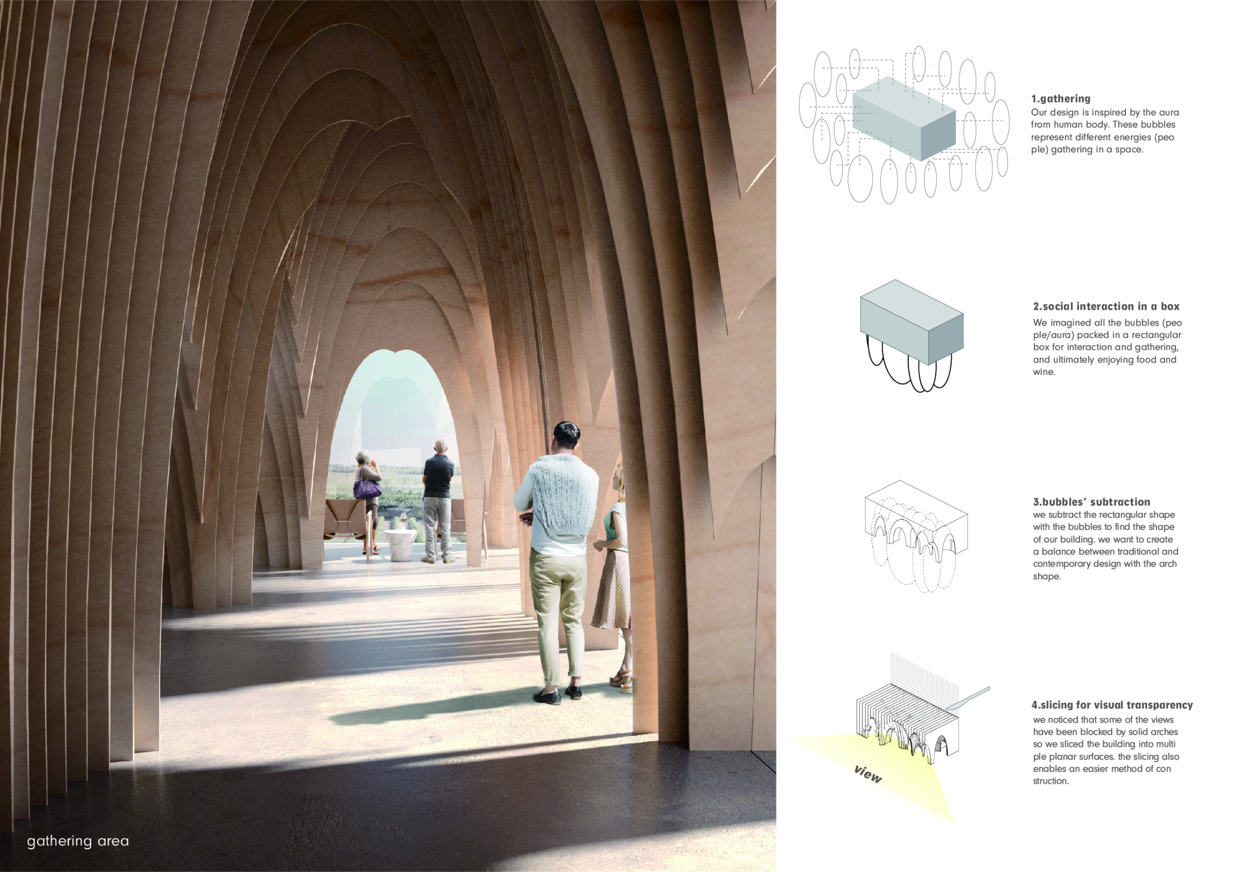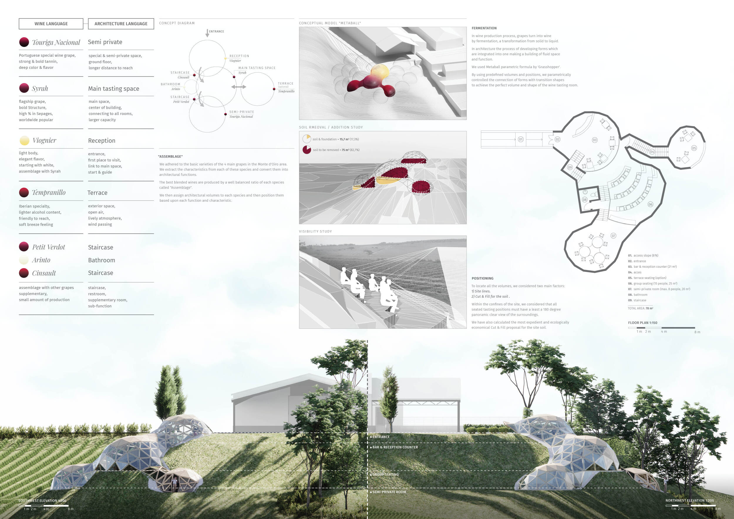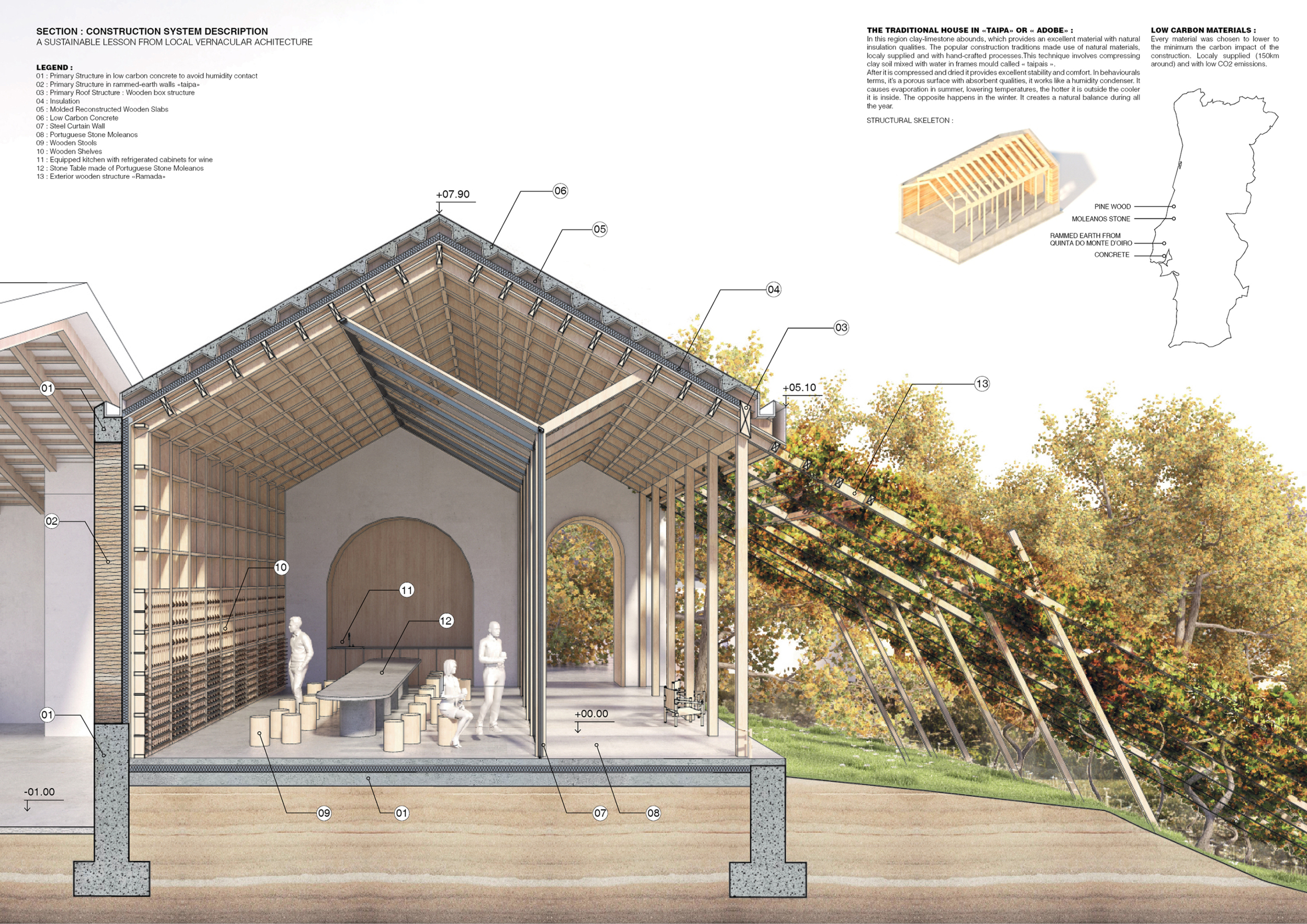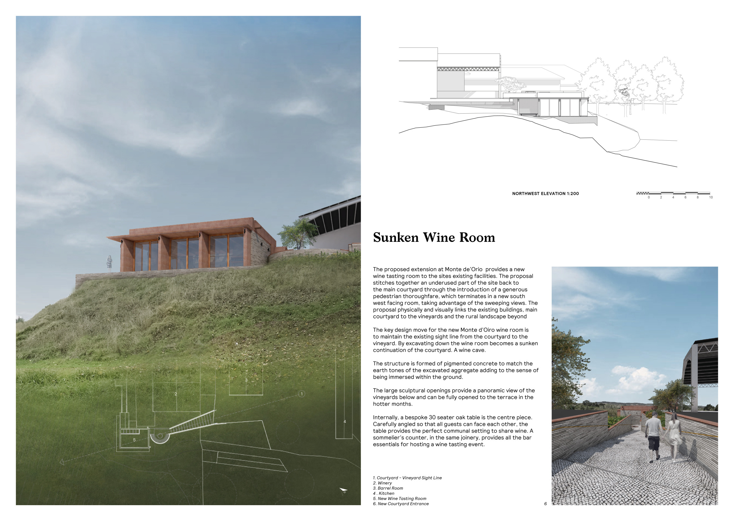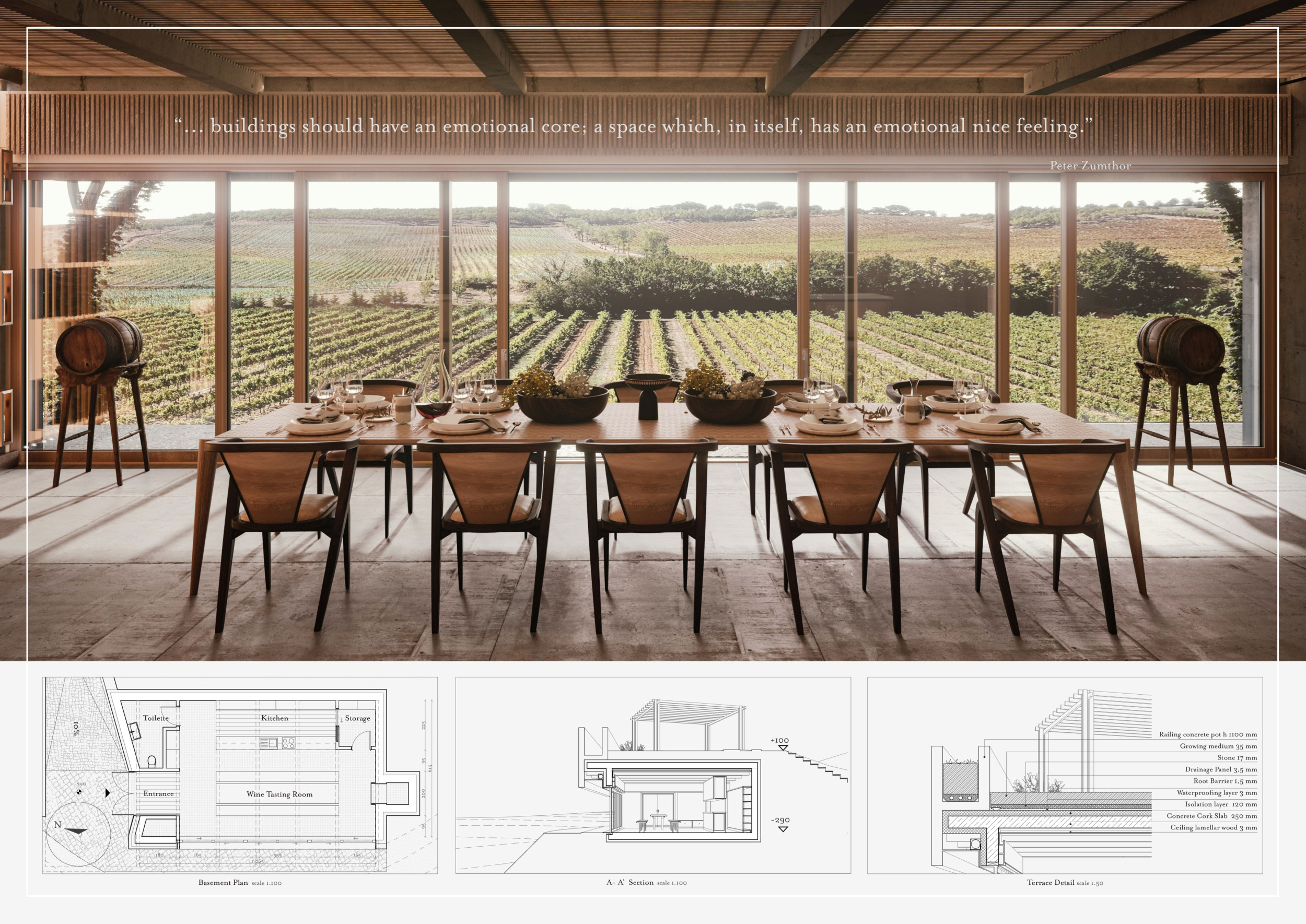 The jury evaluated designs for their capacity to offer a unique space to the vineyard, and sought proposals that made use of natural materials. The received proposals experimented with a host of ideas for integrating the new project within the site. Given the elevated conditions of the existing buildings, proposals conceived of a mix of above-grade concepts as well as constructions carved into the hillside.